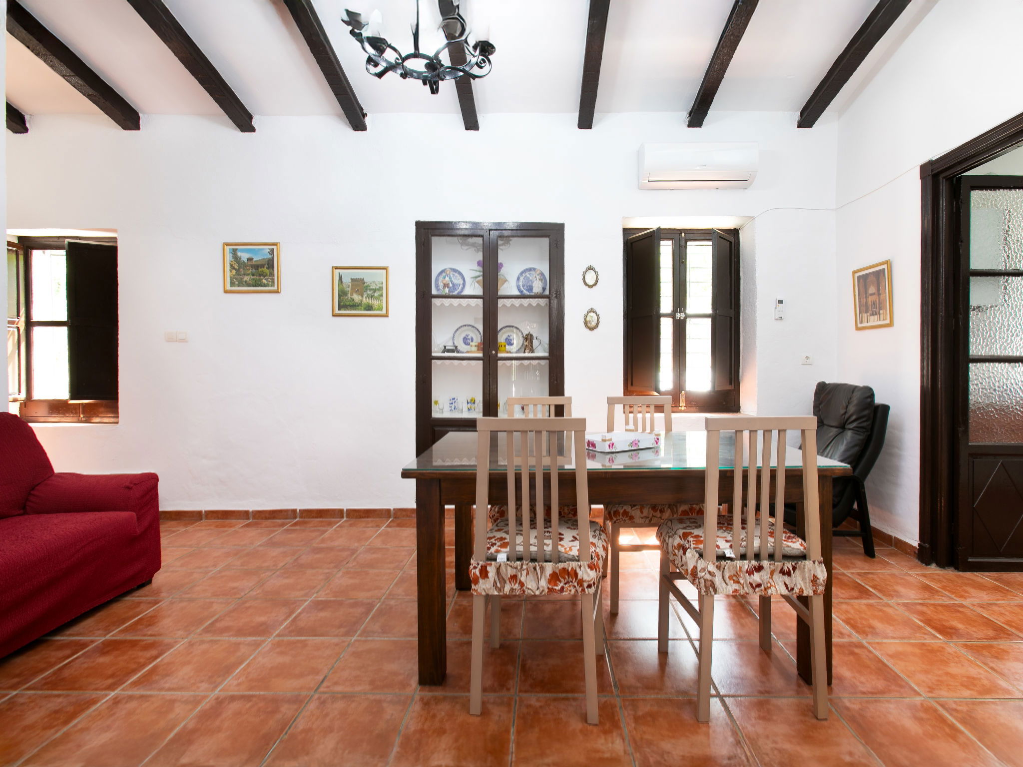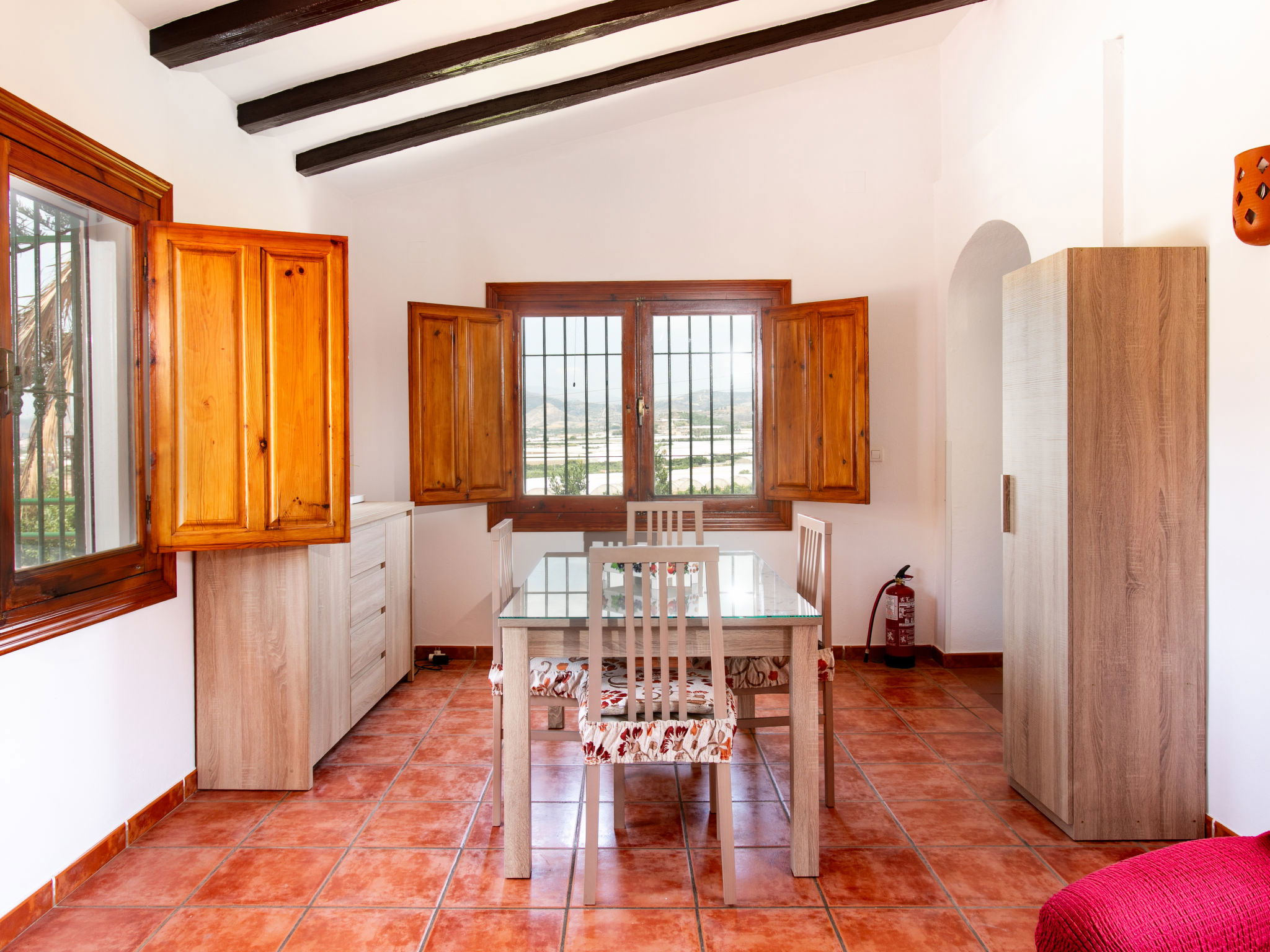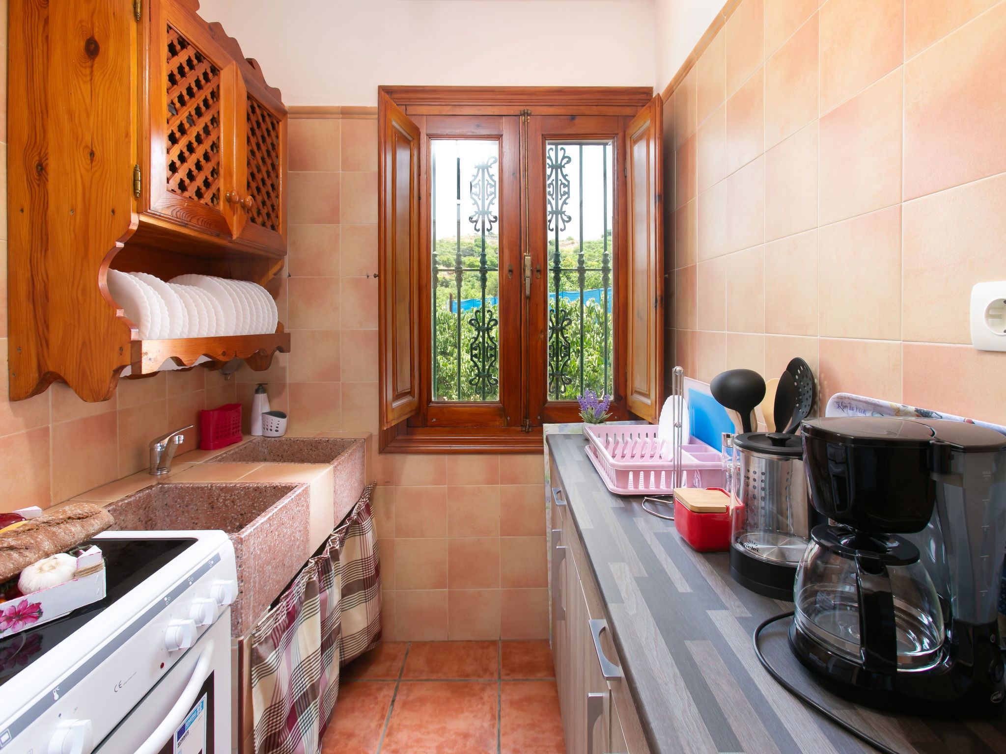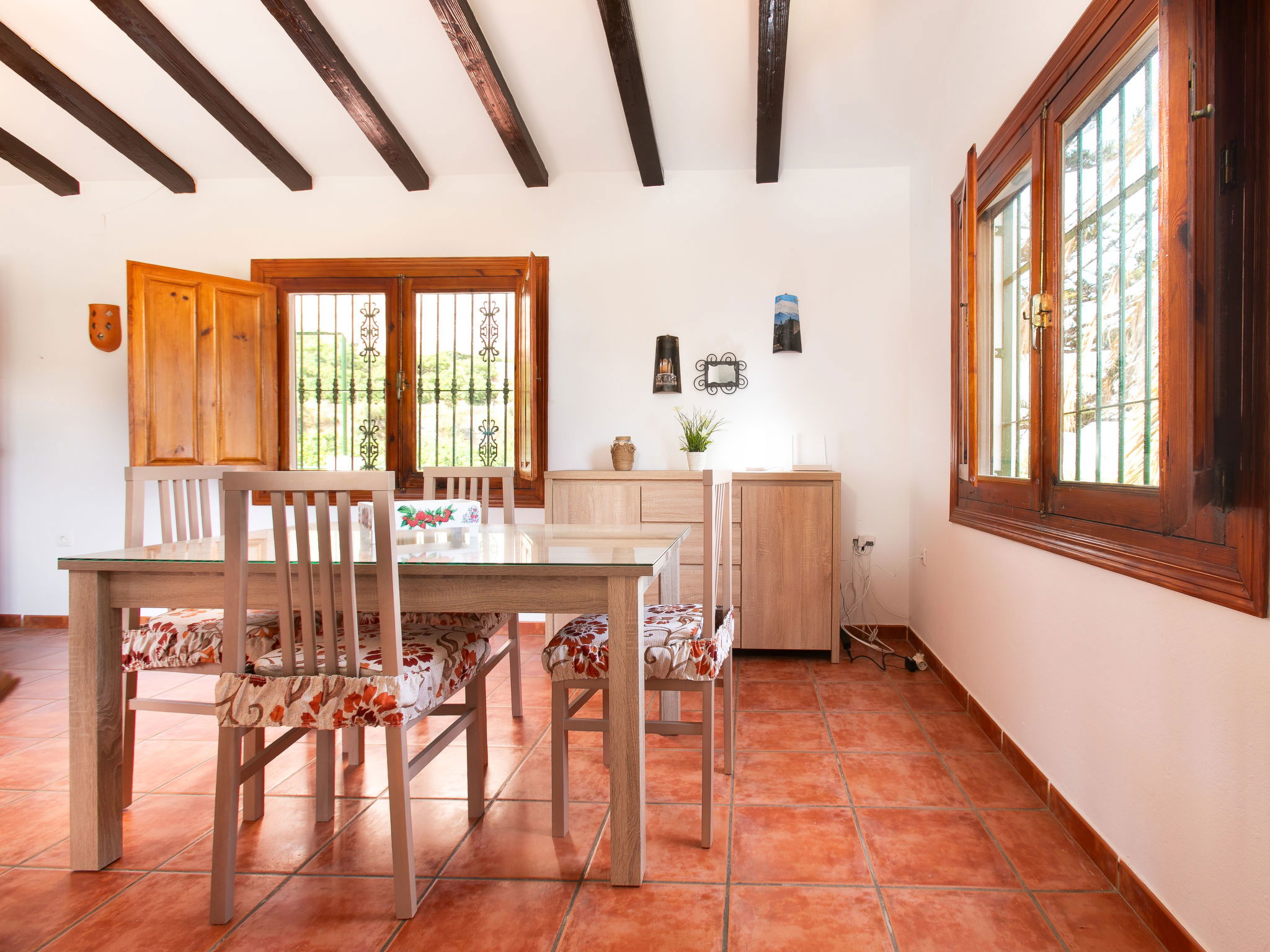 "Villa Chirimoya", 6-room farmhouse 180 m2 on 2 levels. Simple and comfortable furnishings: 1 room with 2 beds (90 cm, length 190 cm). 1 room with 1 french bed (135 cm, length 190 cm). Living/dining room with dining table, TV, satellite TV, air conditioning and forced-air heating. Kitchen (dishwasher, 3 ceramic glass hob hotplates, toaster, kettle, microwave, electric coffee machine). Shower/WC. Upper floor: living/dining room with dining table, TV, satellite TV, air conditioning and forced-air heating. Exit to the terrace. 1 room with 1 bed (90 cm, length 190 cm). 1 room with (1 cm), 1 french bed (135 cm, length 190 cm). Kitchen (2 ceramic glass hob hotplates, toaster, kettle, microwave, electric coffee machine). Shower/WC. Large terrace. Terrace furniture, barbecue, deck chairs (4), covered balcony. Panoramic view of the sea and the mountains. Facilities: washing machine, iron, mosquito net, children's high chair, baby cot for up to 2 year olds, hair dryer. Internet (WiFi, free). Parking (2 cars) at the house. Please note: 1 small pet/ dog allowed. Smoke alarm, fire extinguisher. VUT/GR/13850 // Reg. Nr.: ESFCTU0000180250005258330000000000000000VUT/GR/138503