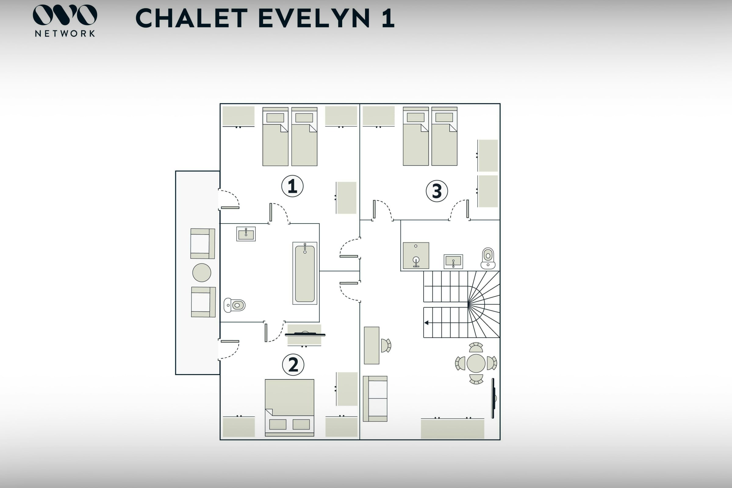 Chalet Evelyn is ideal for families or groups of friends looking for comfort and space, with three floors designed to accommodate 10 guests, including eight adults.