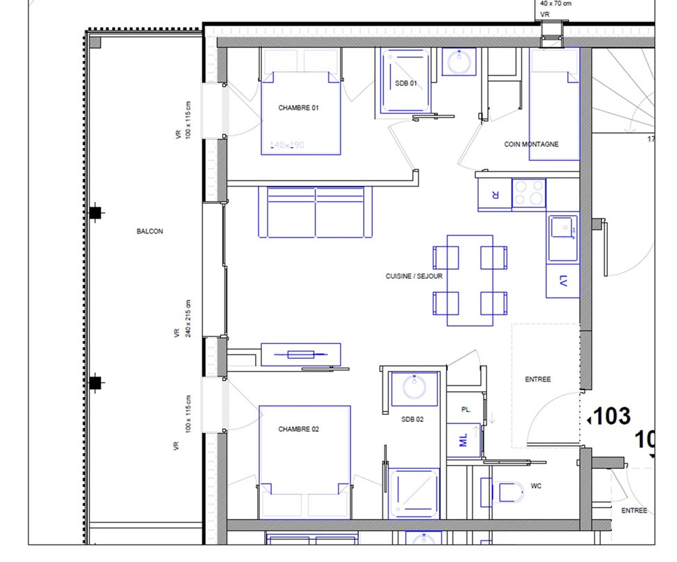 The second bedroom has a 160*200 cm double bed and a shower room. A sleeping area with a bunk bed (the high bed is not suitable for children under 6) - completes the accommodation. A shower room and separate toilet complete this apartment.
