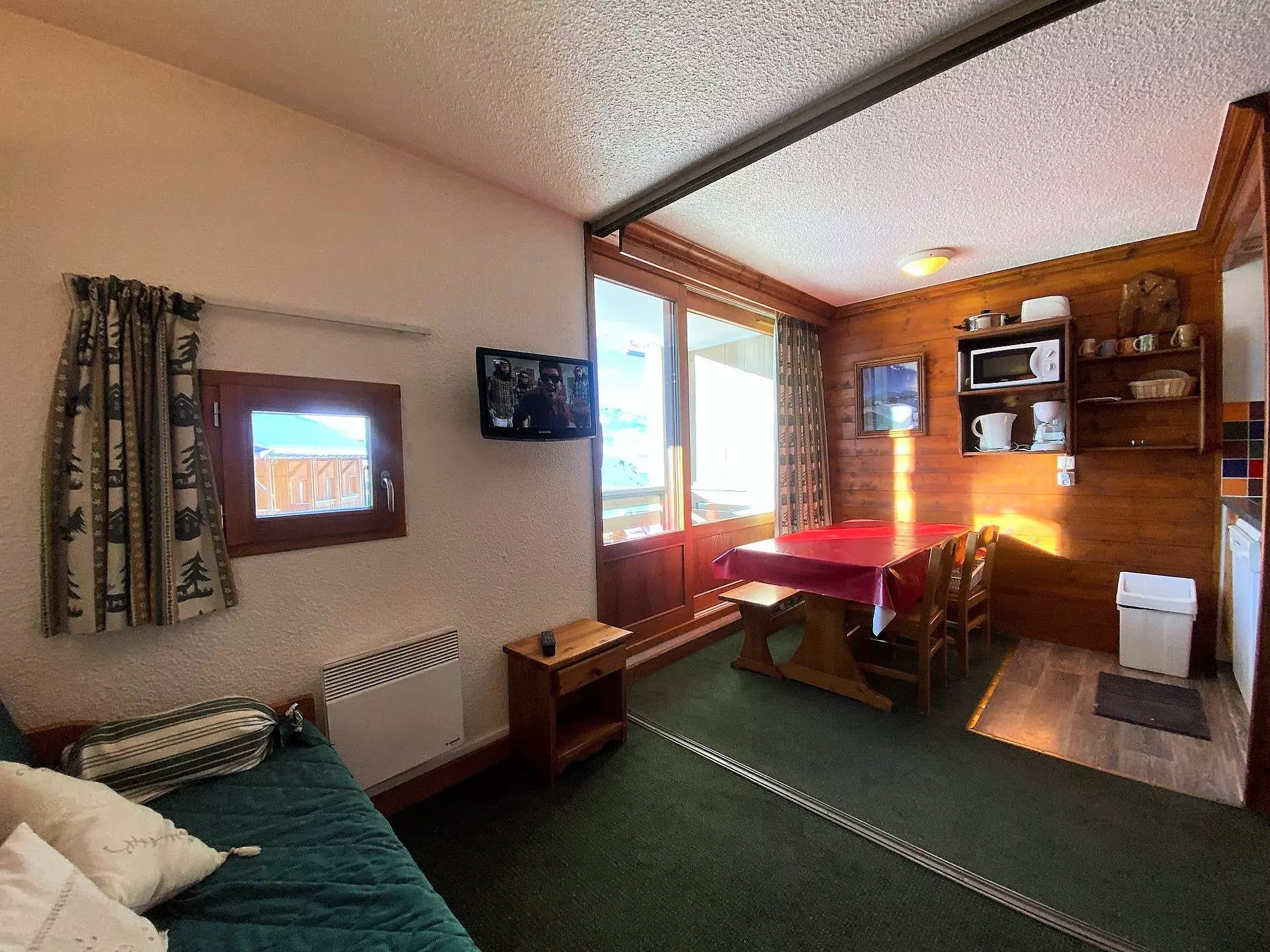 The apartment, for 4 people, with a surface area of approximately 30 m², with a south/east facing balcony offering a lovely view of the Val Thorens massif, is located on the 1st floor.