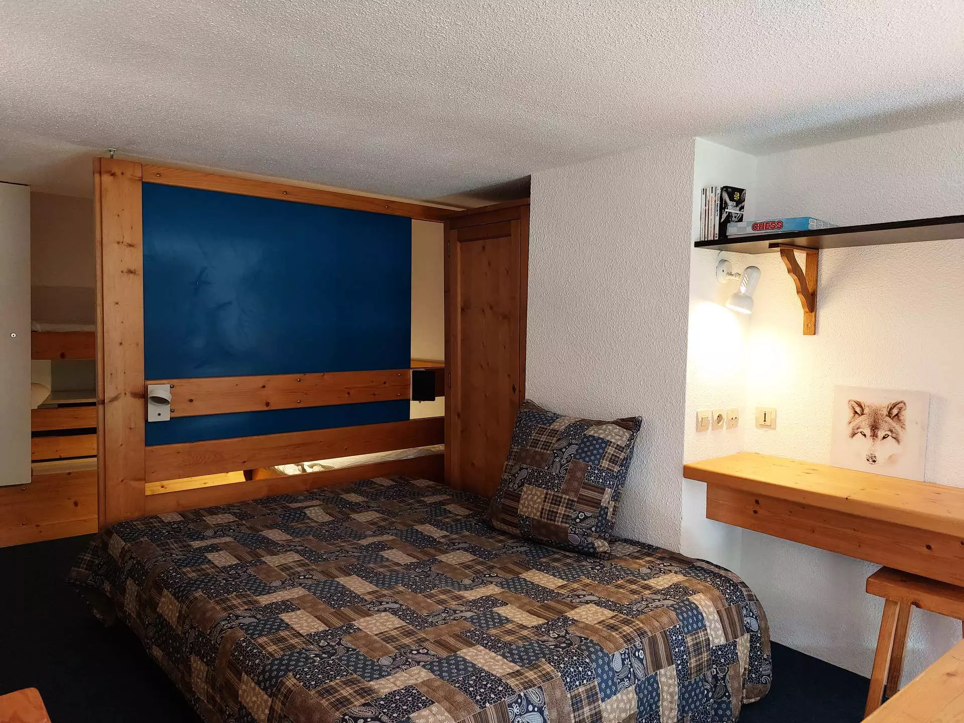 1 bedroom open to the living room, with a double bed 140x190 cm.