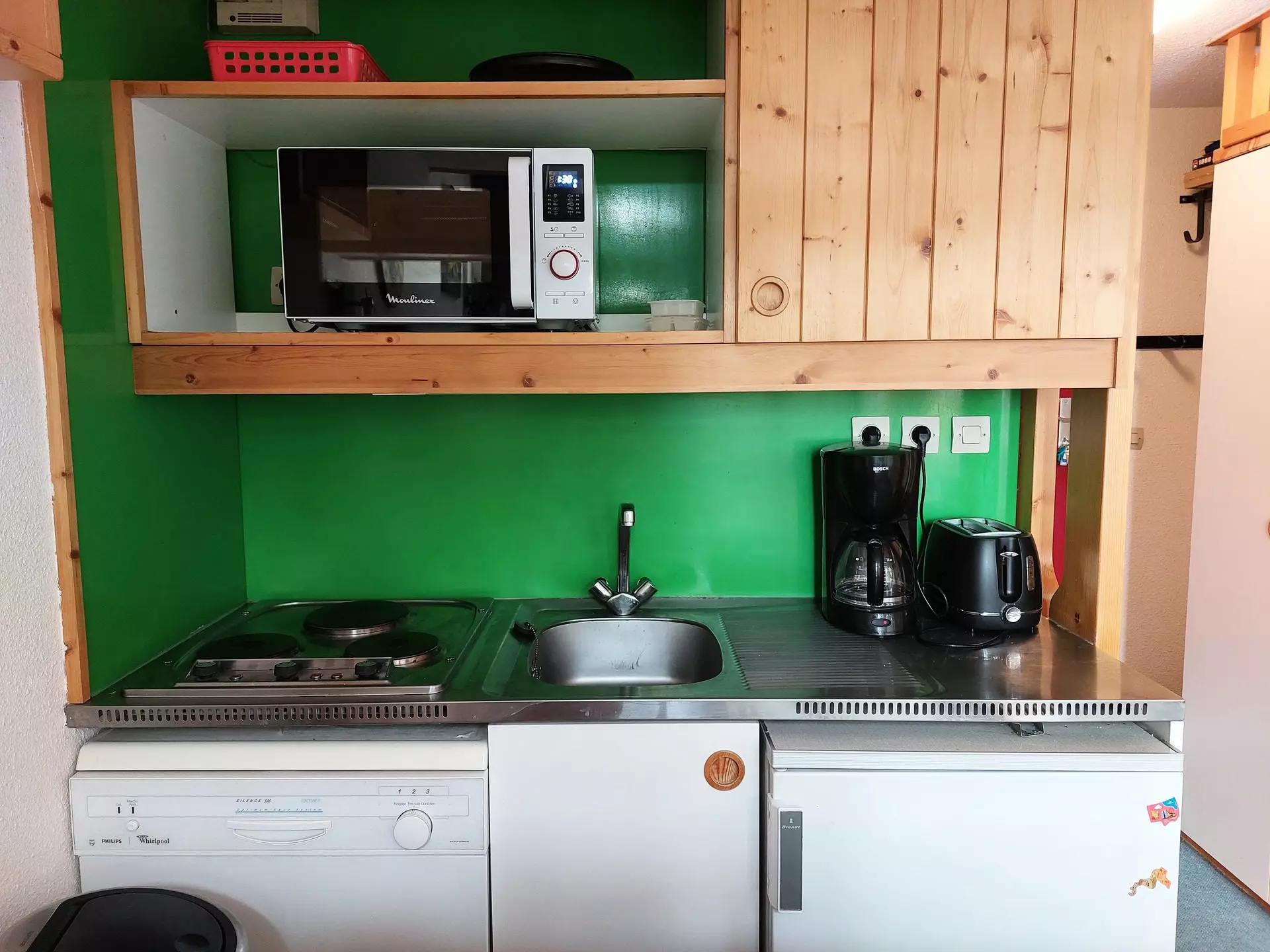 Fully equipped with a refrigerator, dishwasher, toaster, kettle, coffee maker and combi-grill microwave.