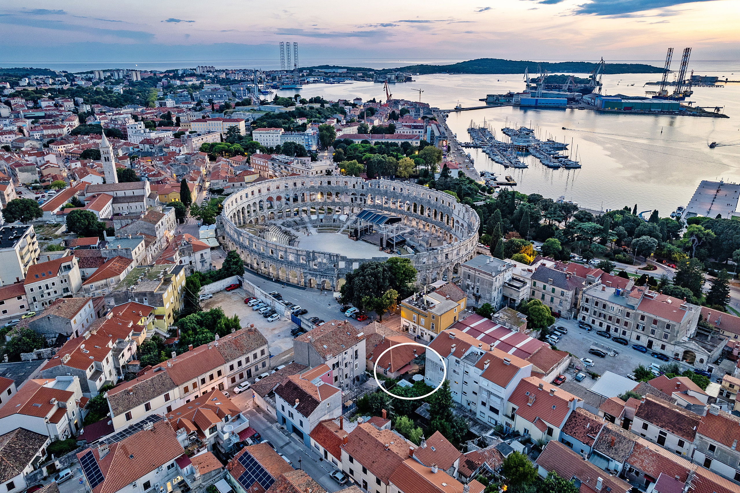 Located in the heart of Pula, just 50 meters from the famous Amphitheater and within walking distance of local cafes and restaurants, this apartment offers an ideal base for exploring Pula. A supermarket is just 200 meters away, and the rock beach at Gortanova Uvala is a short 3 kilometers distant. The property includes a lovely shared garden with outdoor furniture, perfect for relaxing moments.