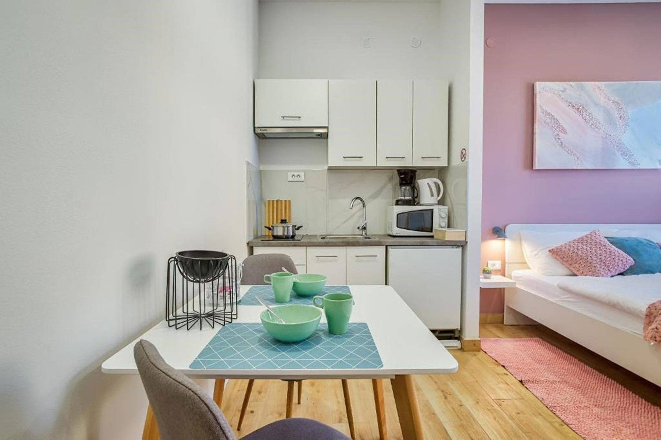 Discover the charming Studio A - Amphitheater Garden Apartments nestled in the heart of Pula, perfectly designed for couples and small friend groups seeking a comfortable urban retreat. This well-equipped studio offers a delightful blend of modern amenities and convenient location.