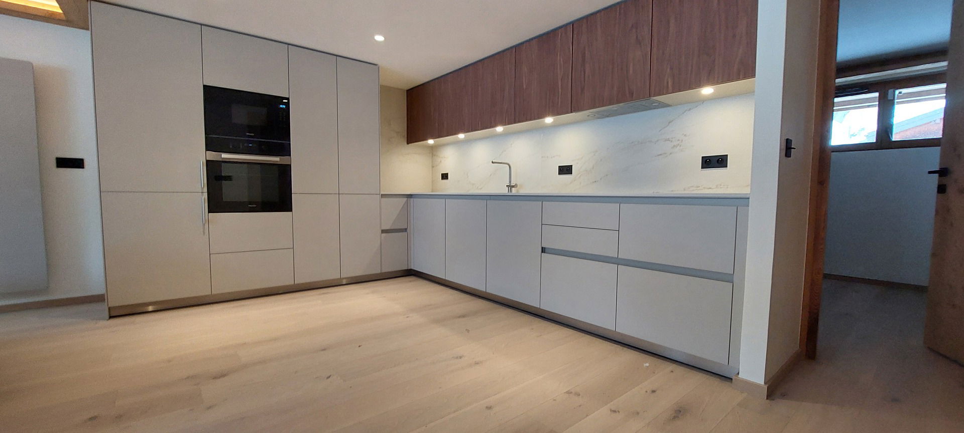 Equipped with dishwasher, oven, induction hob ,hood, microwave oven, fridge with freezer, washing machine