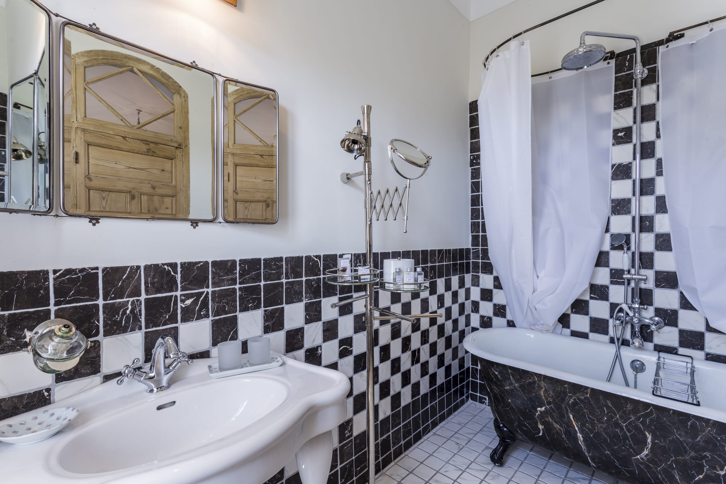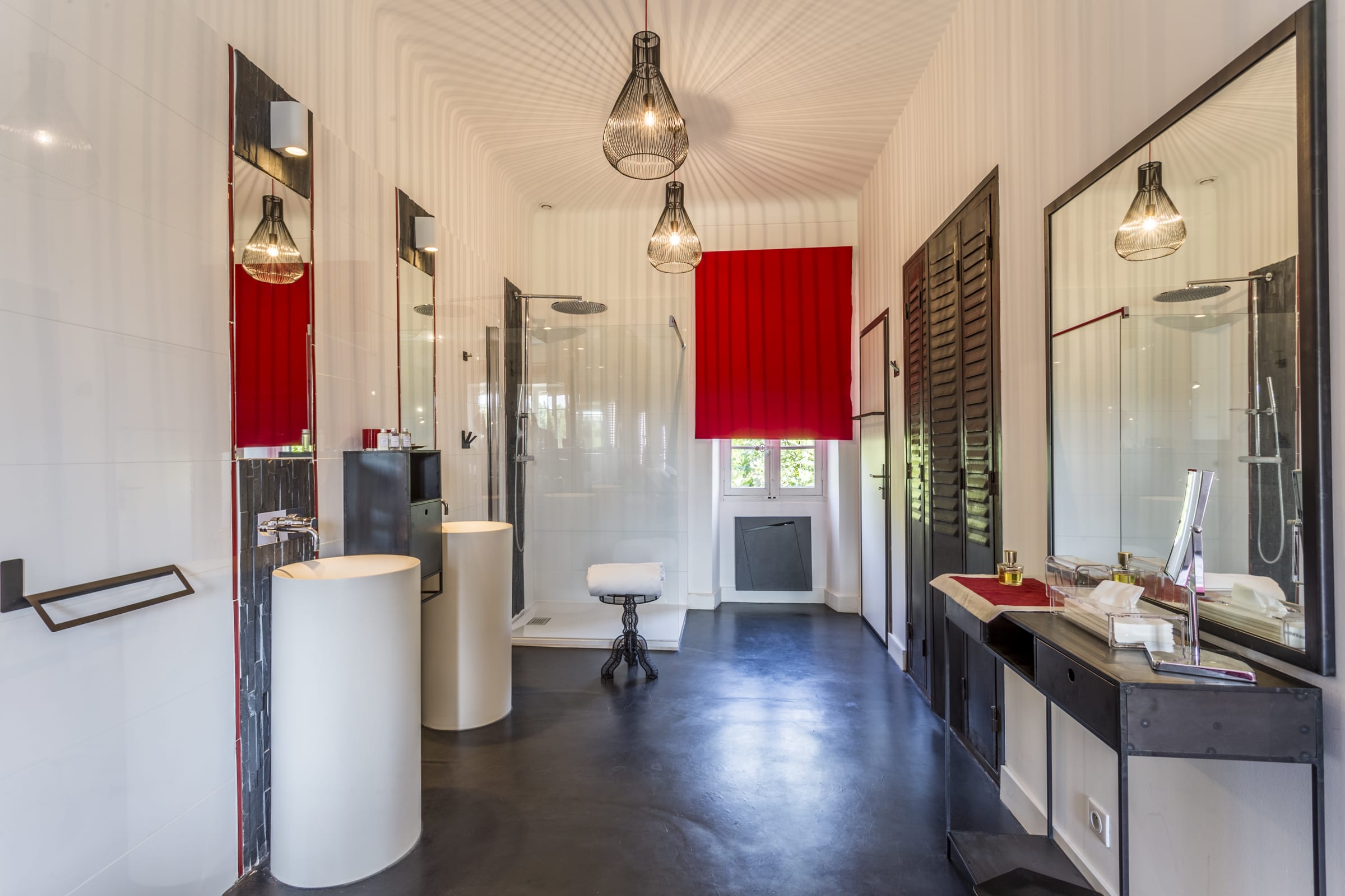 Bedroom 1: Faubourg St Honoré - a 180x200cm or 2x90cm beds with TV - shower room - 2 sinks and WC, and walk-in wardrobe.