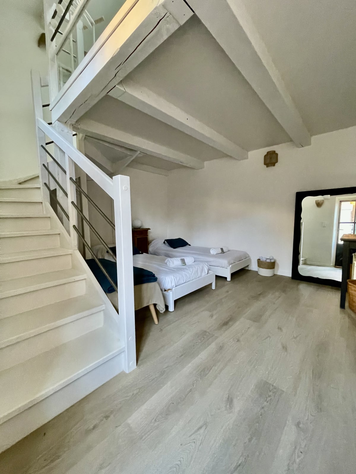 On one level, the studio is equipped on the ground floor with 2 80x200 cm beds that can be converted into double beds