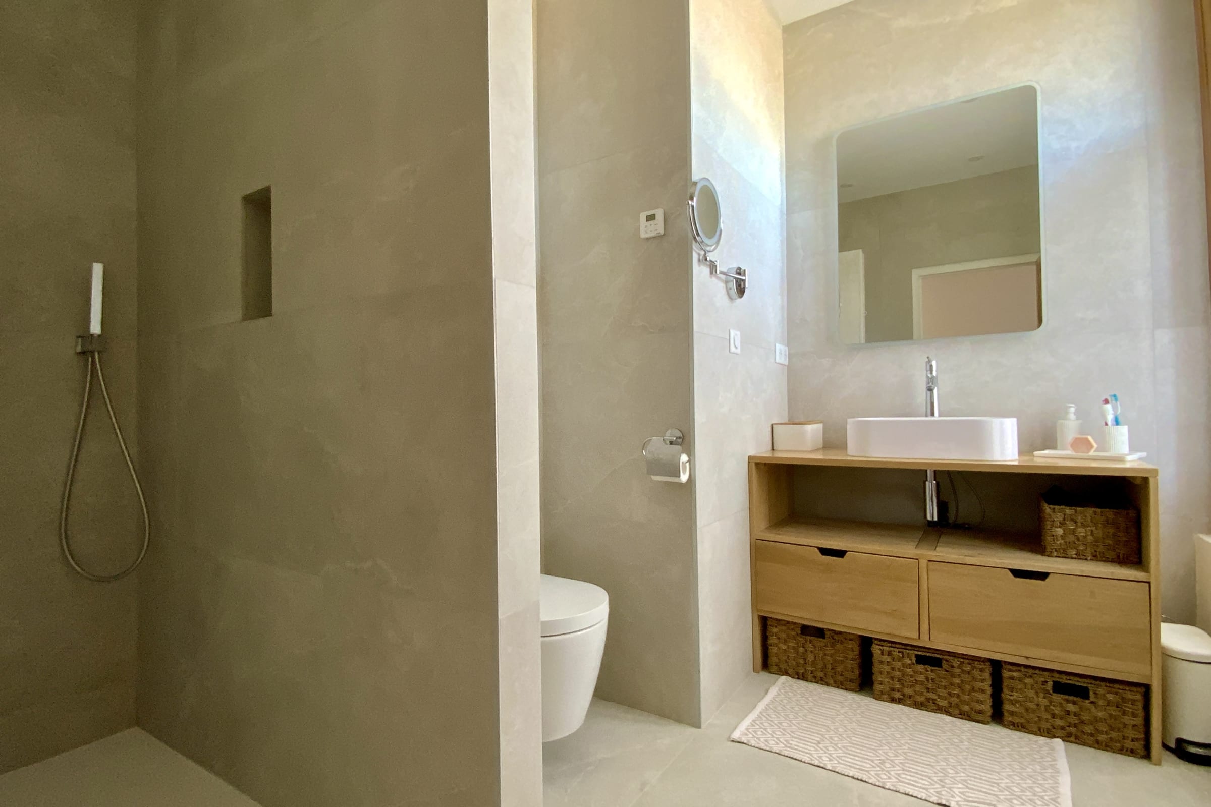 • A Pool House with bathroom, separate WC and covered summer kitchen, overlooking the swimming pool with all the necessary equipment: Table, chairs, gas plancha, water point, deckchairs...