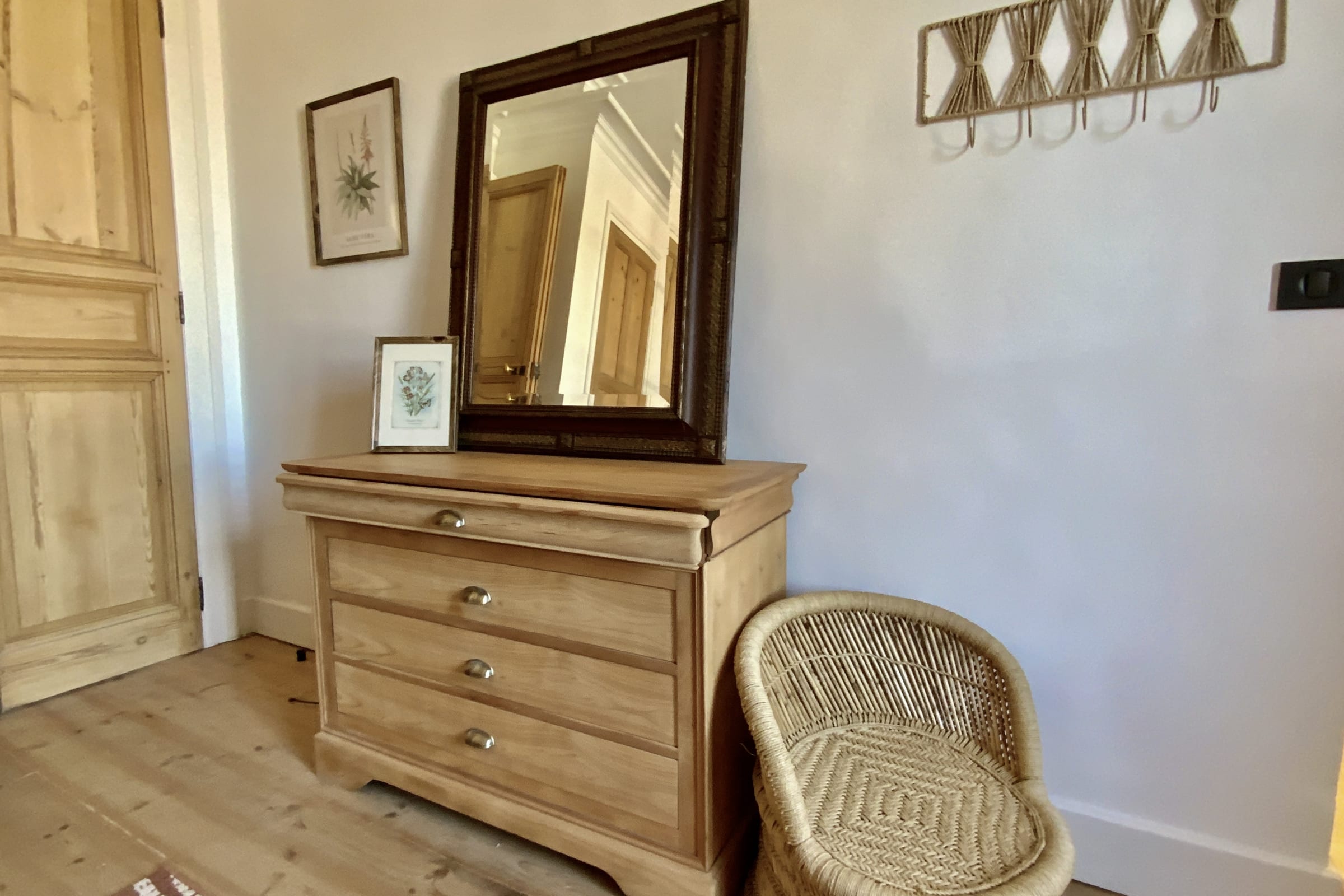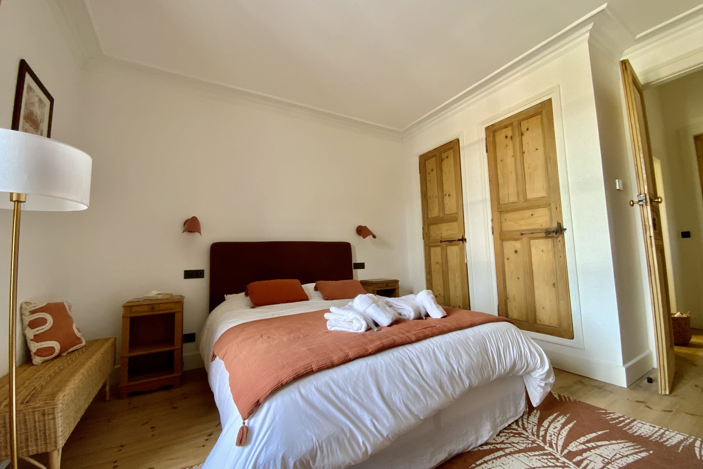 • A fifth and final bedroom, which is the second master suite, equipped with a chest of drawers, a wardrobe, a 160cm bed and a false wall fireplace. The bathroom is equipped with a walk-in shower, a double sink, a semi-separate toilet and a towel dryer.