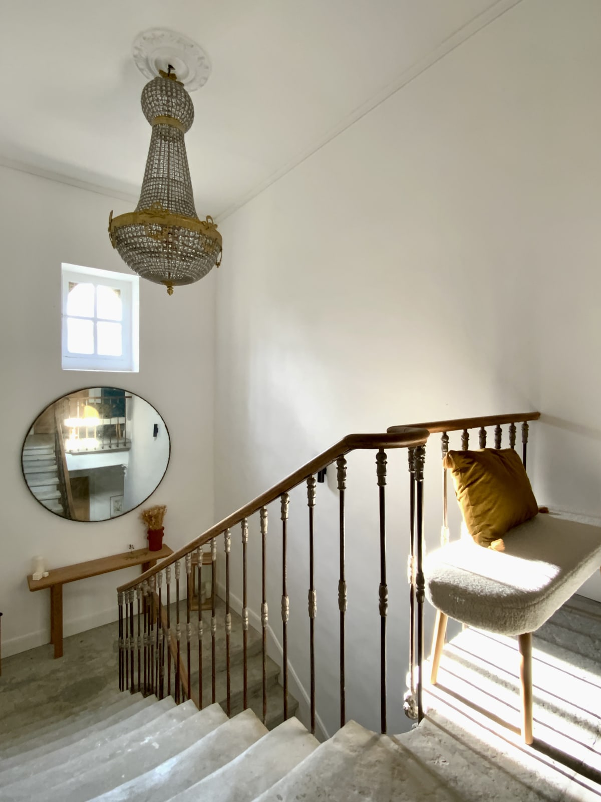 You will access the upper floor by a wide staircase secured with a ramp. The large bright corridor, with its relaxation area, serves the bedrooms and the bathrooms, you will find: