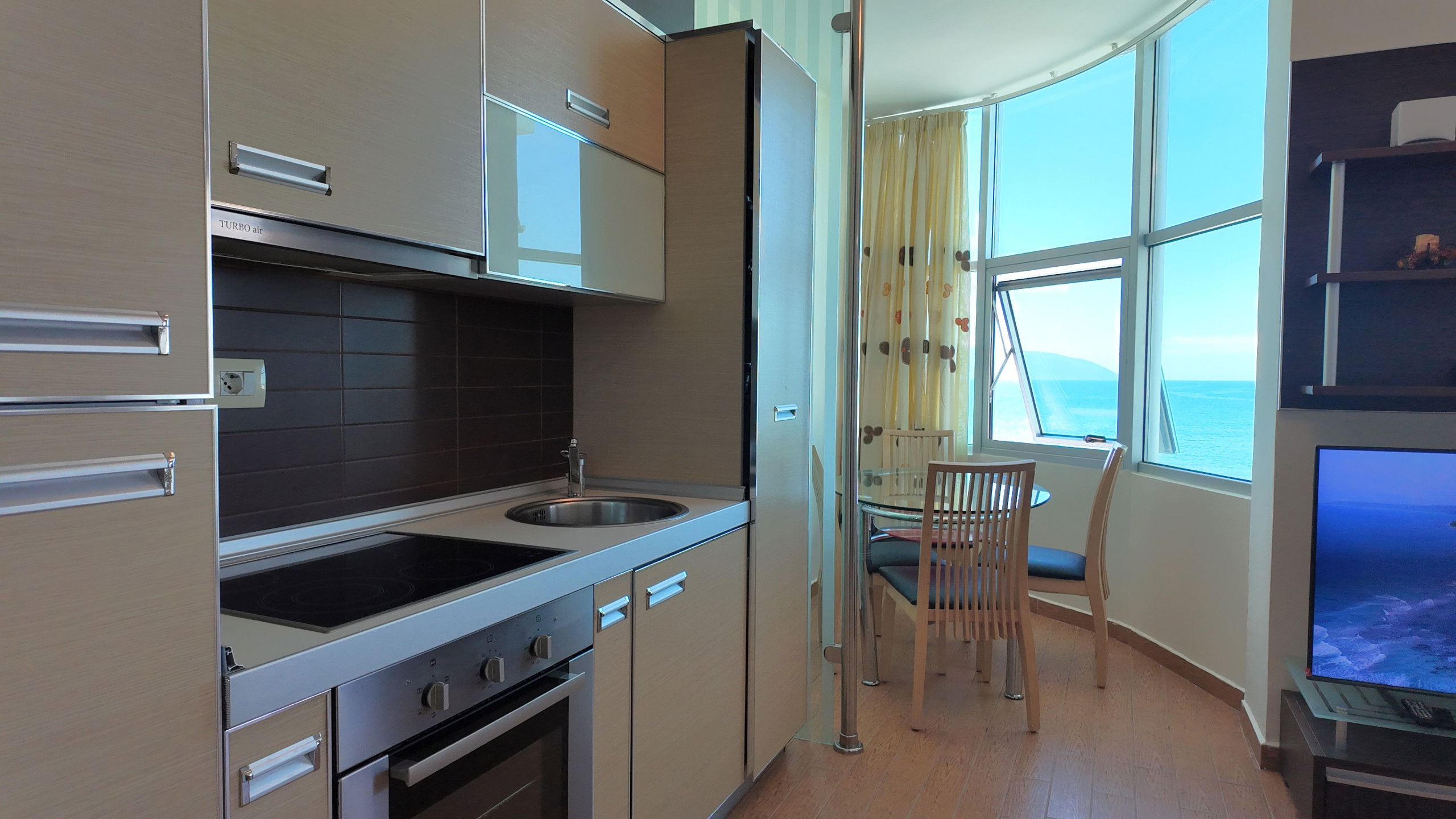 Climate control is excellent with central heating and air conditioning throughout the entire accommodation, ensuring comfort in all seasons. A lovely balcony offers a perfect spot to enjoy the stunning sea views, allowing guests to soak in the beautiful coastal atmosphere.