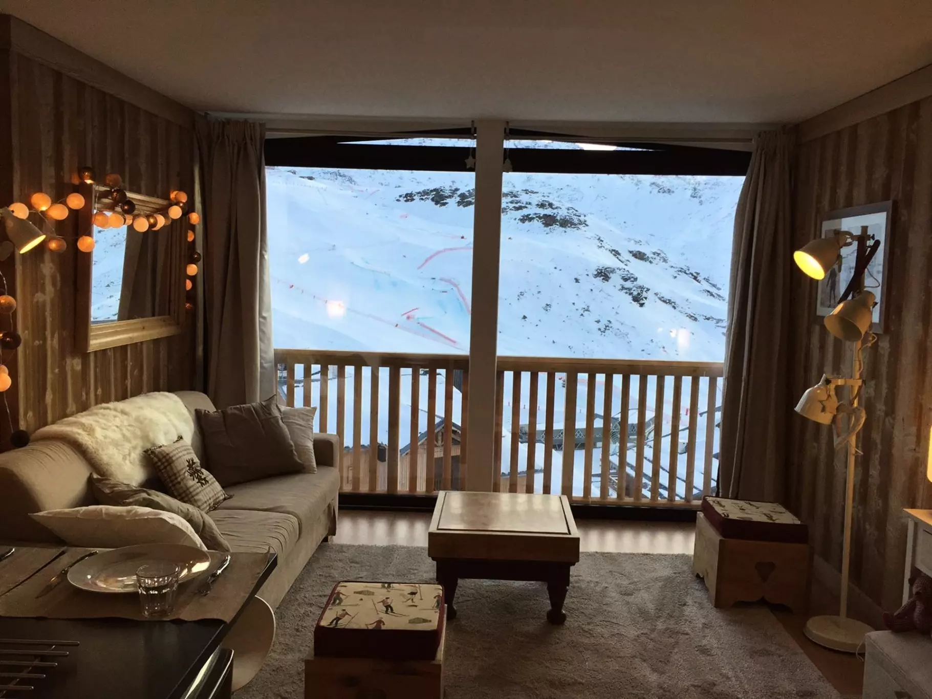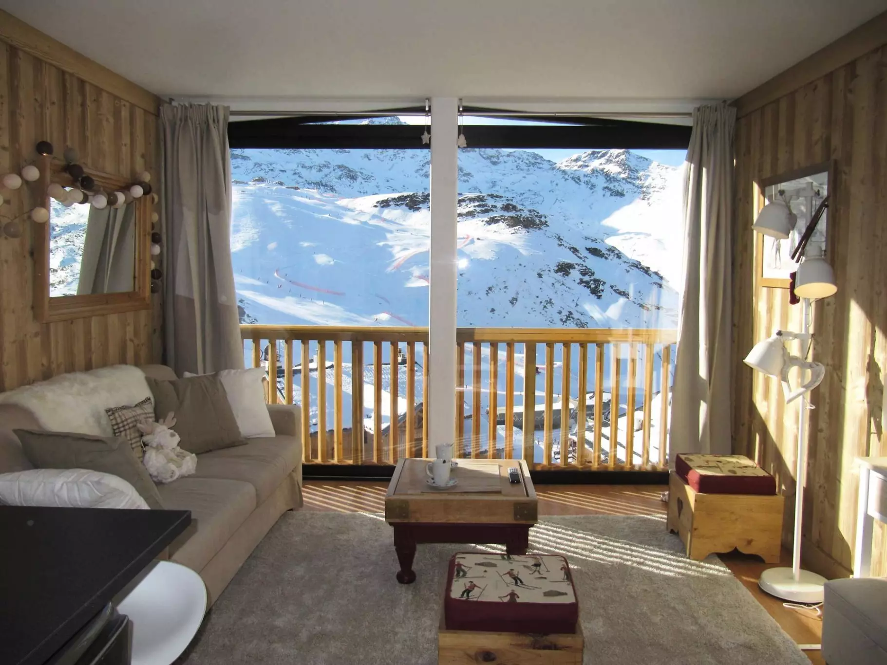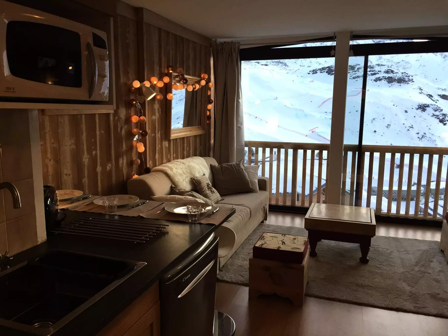 Lovely 25m² apartment for 3 people, tastefully renovated in a mountain spirit with woodwork, on the 7th floor, with elevator to the 6th floor. Large bay window with a magnificent south-facing view of the Cime Caron and in the evening sunset on the Masse slope.