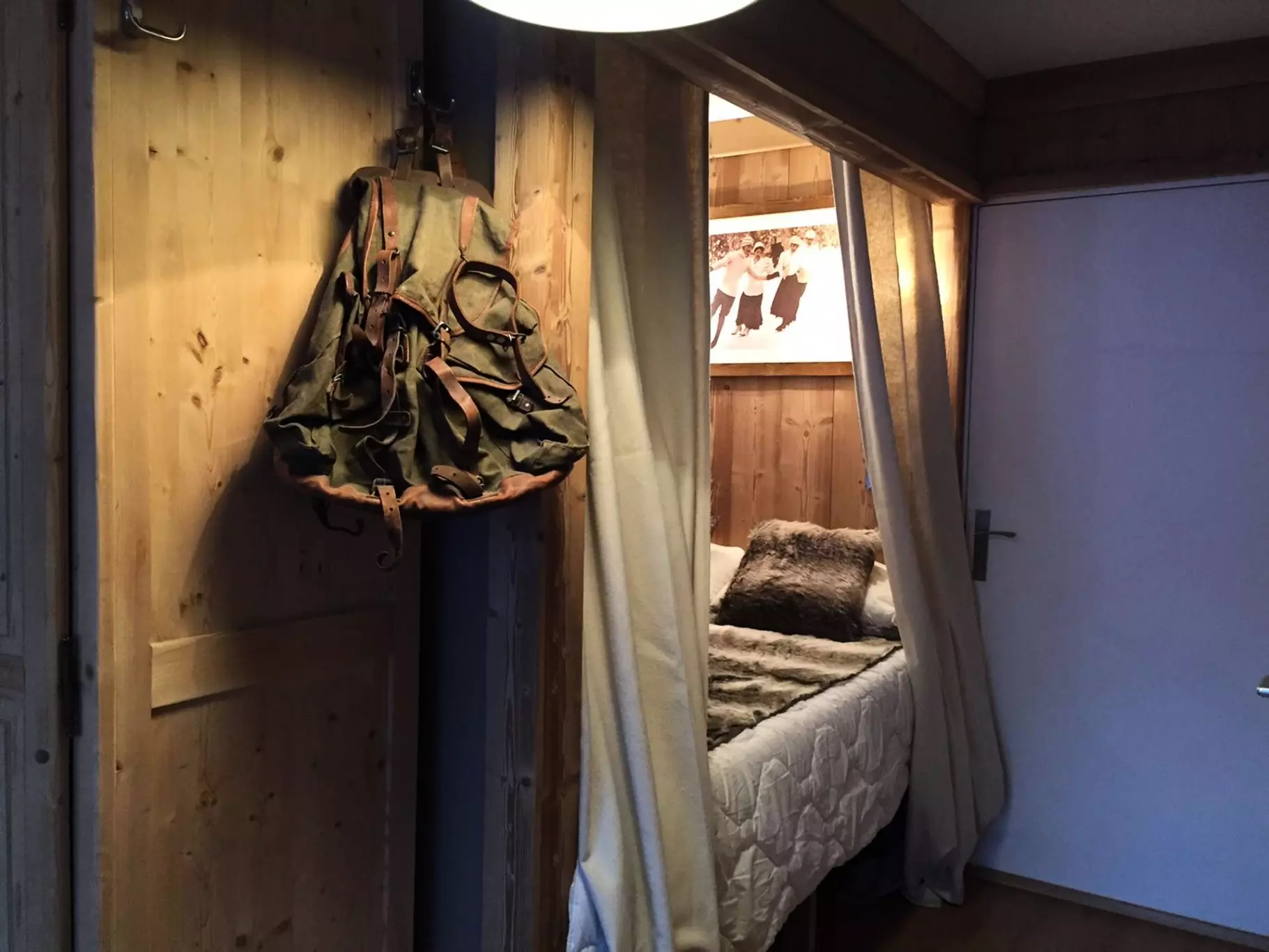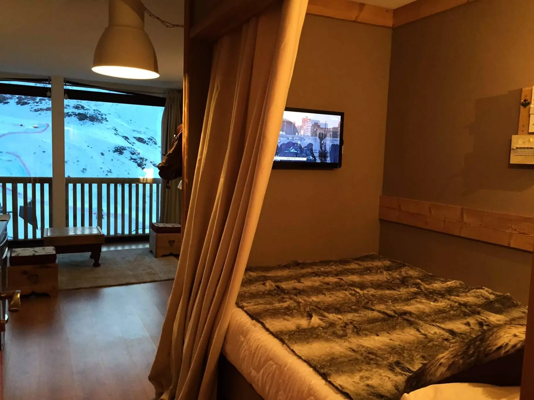 Savoyard bed at the entrance with double bed and TV. Equipped with duvet.