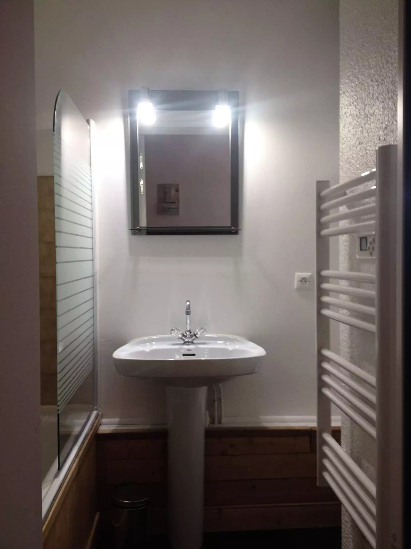 1 bathroom with towel dryer and toilet.