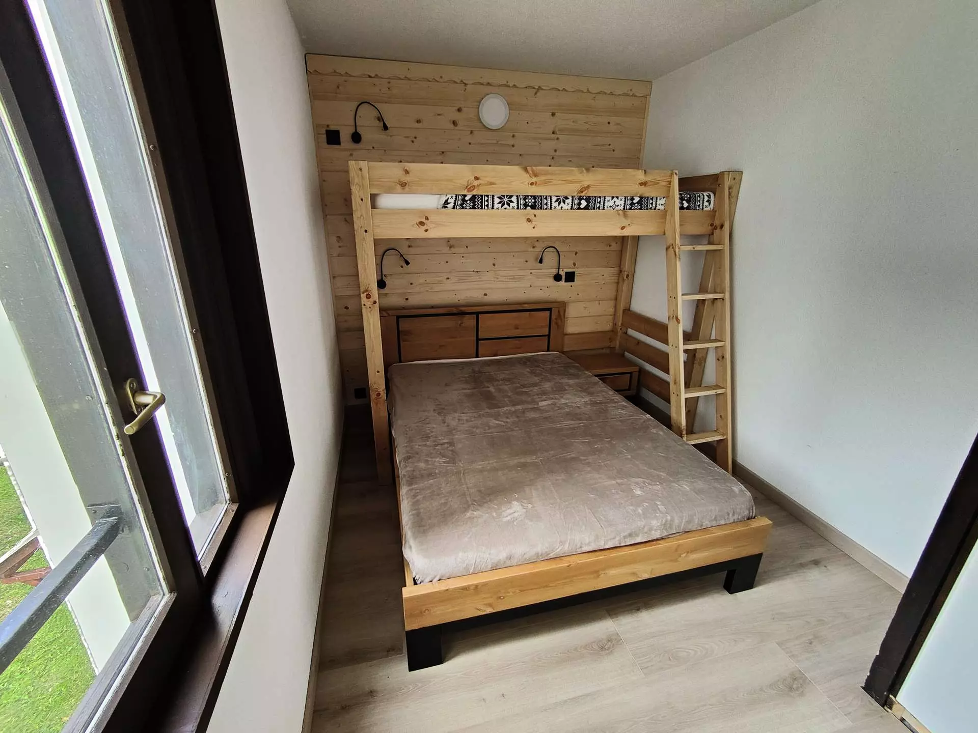 - A bedroom with 1 double bed and 1 single bed on the mezzanine. Equipped with duvets.