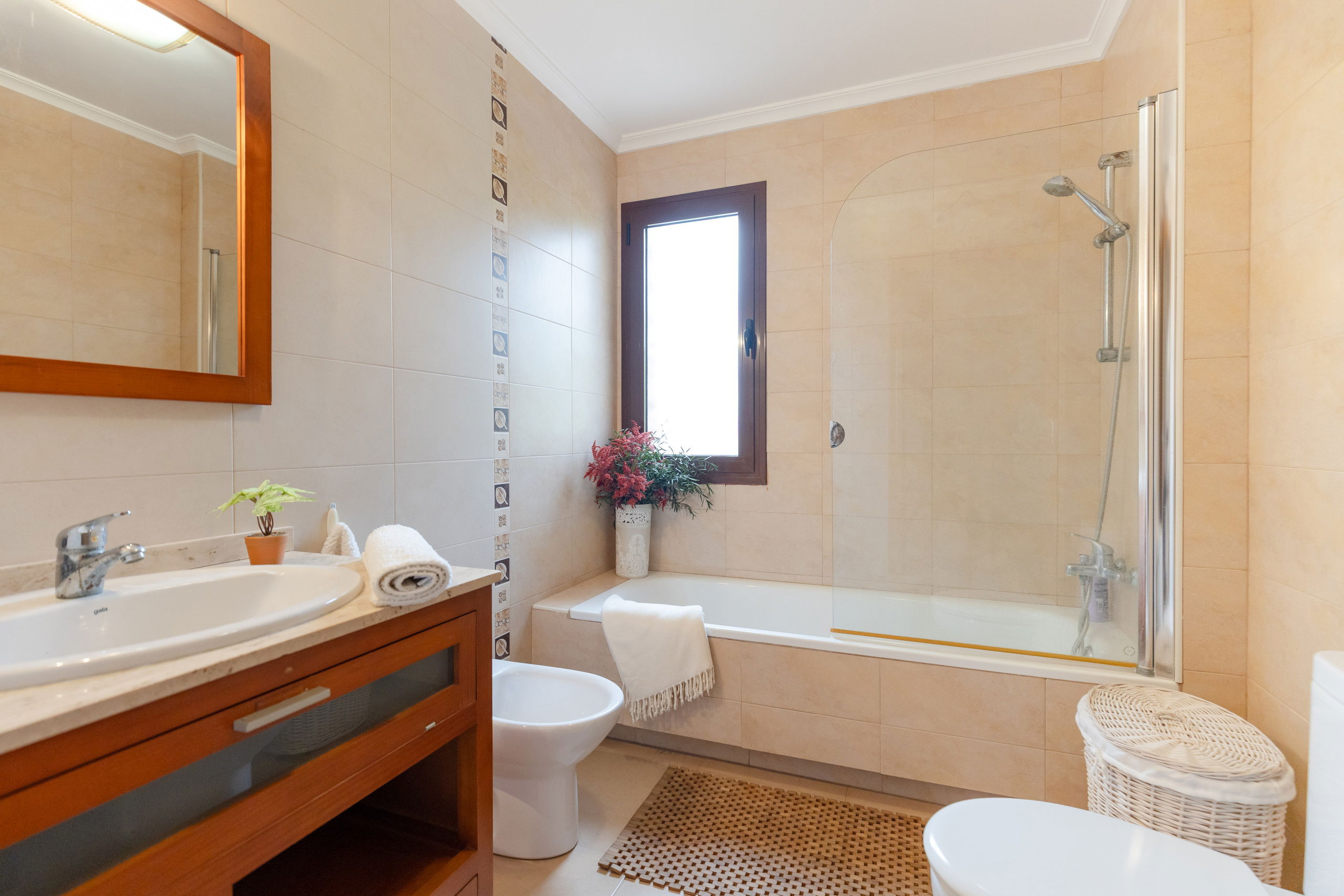 The property is equipped with air conditioning and heating, ensuring a comfortable stay both in summer and winter. It has 2 full bathrooms, with shower.