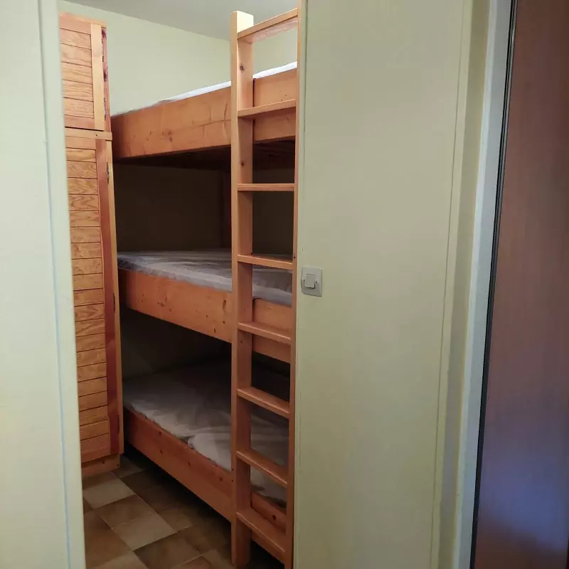 This 27 m² accommodation consists of an optimized living room, with different sleeping arrangements: a convertible sofa, a bunk bed with 3 individual beds, ideal for a stay with family or friends.