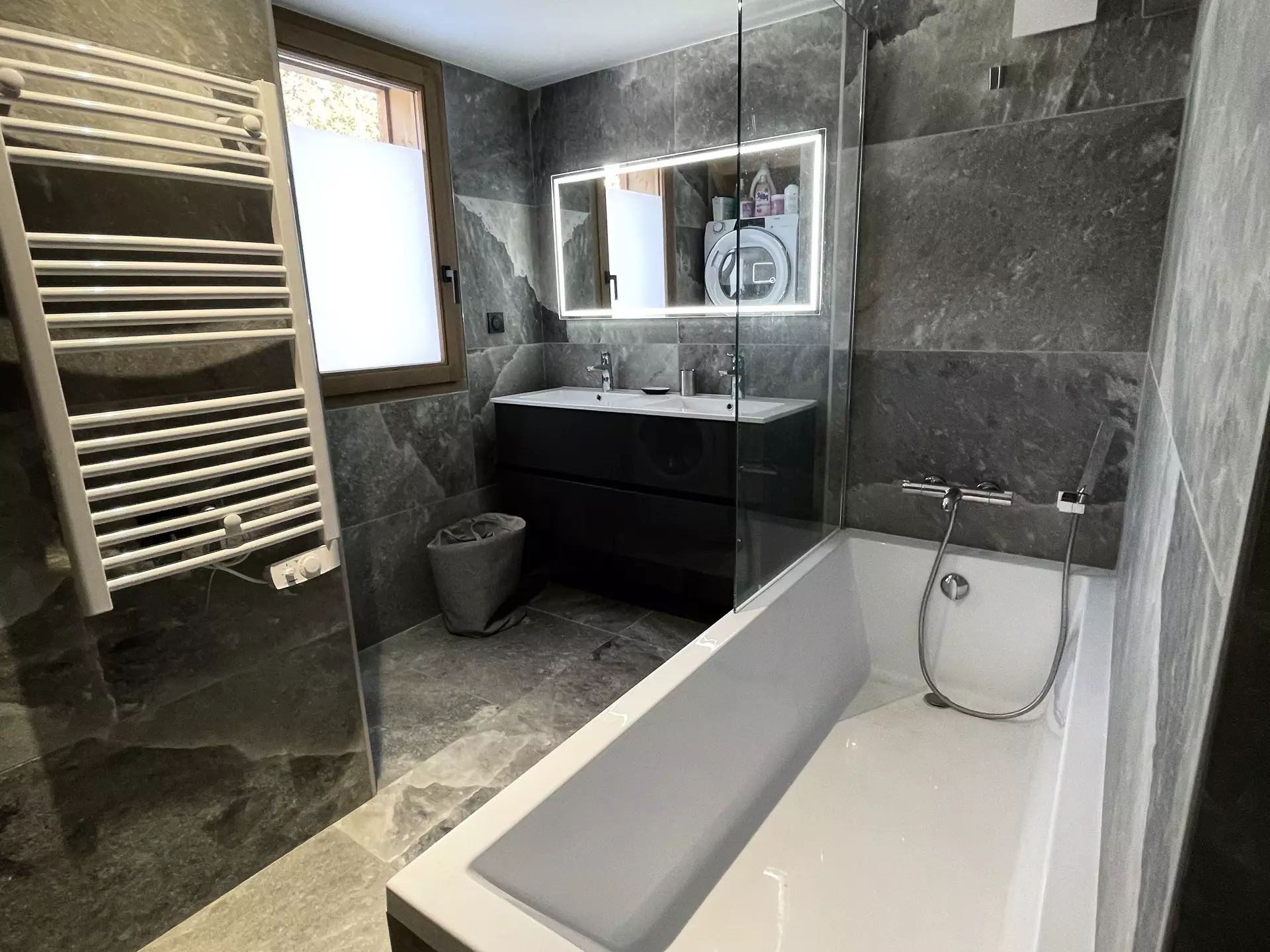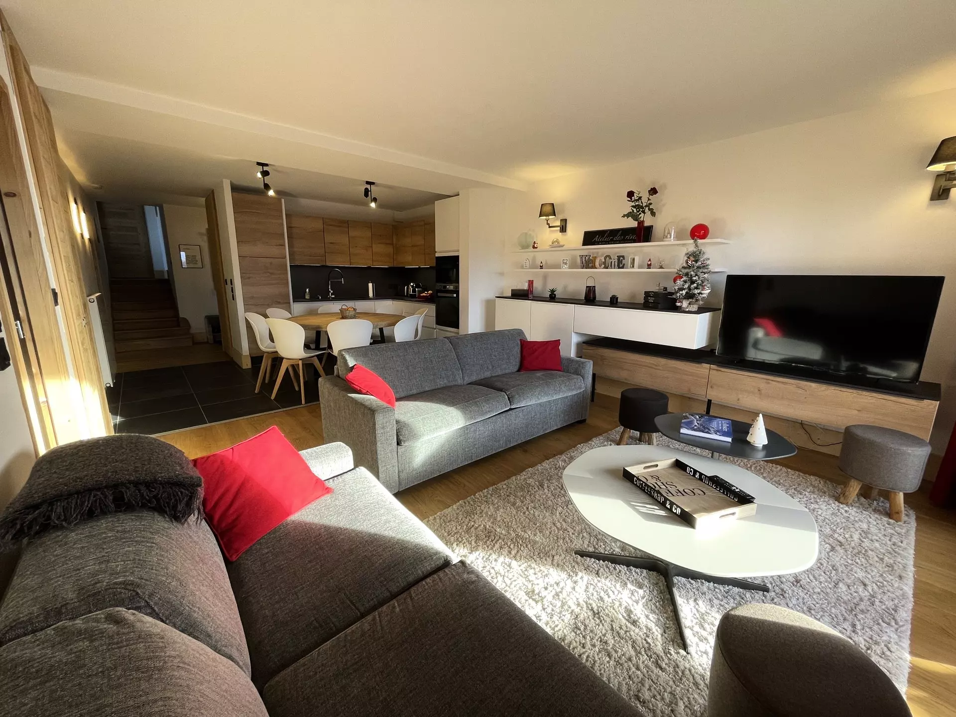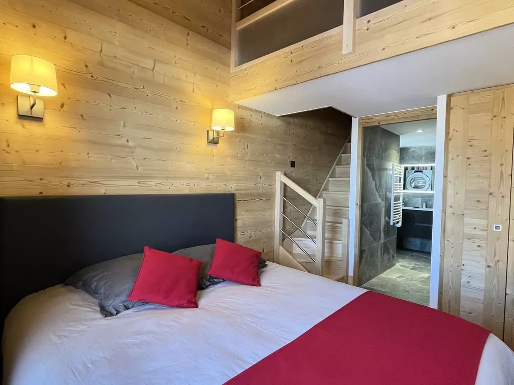 Spacious, warm, and welcoming 100m² apartment with a contemporary, cozy Alpine style. The living room will charm you with its brightness and its opening onto a south-facing terrace facing Mont Pourri.