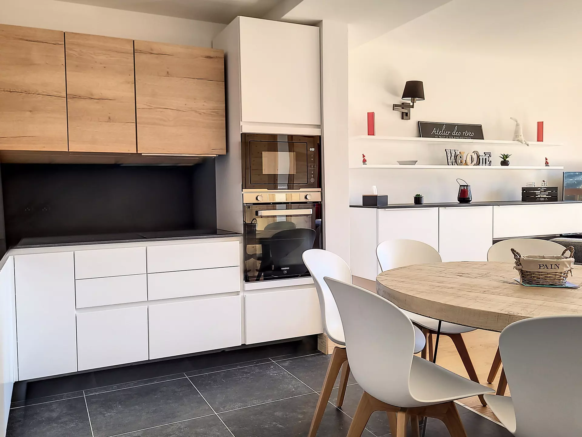Fully equipped kitchen: induction hob, microwave, refrigerator with freezer, dishwasher, oven. Nespresso coffee machine.