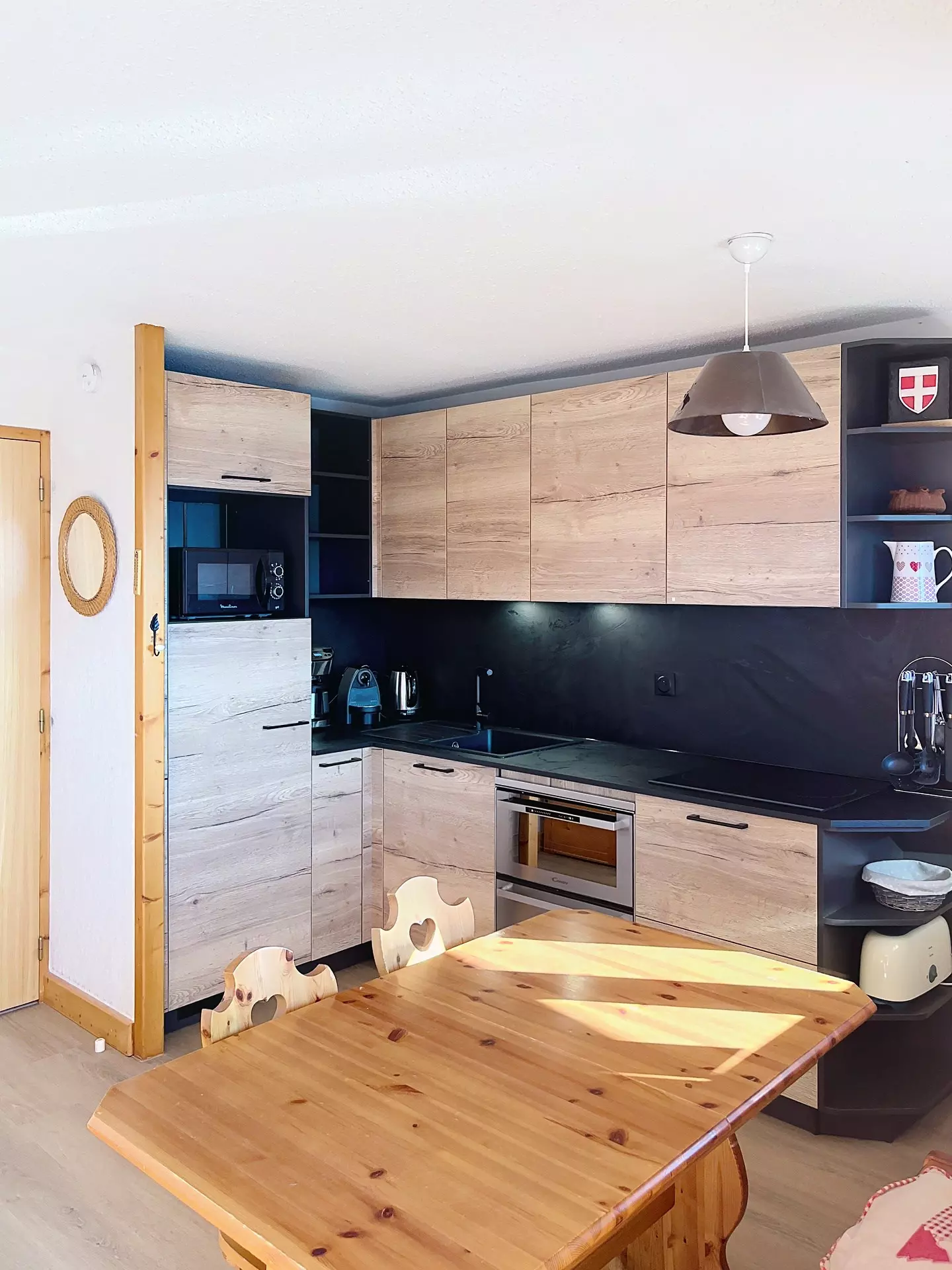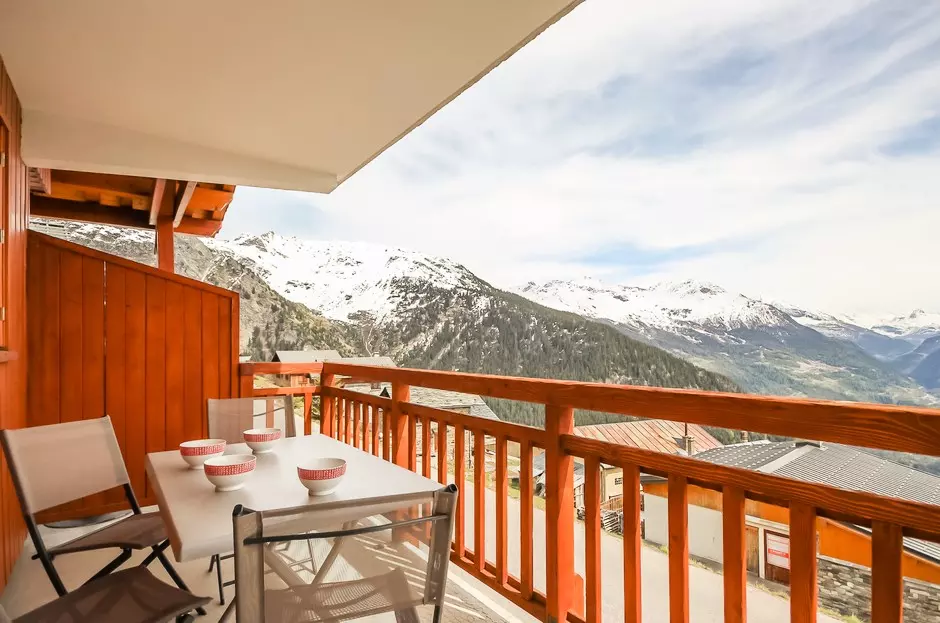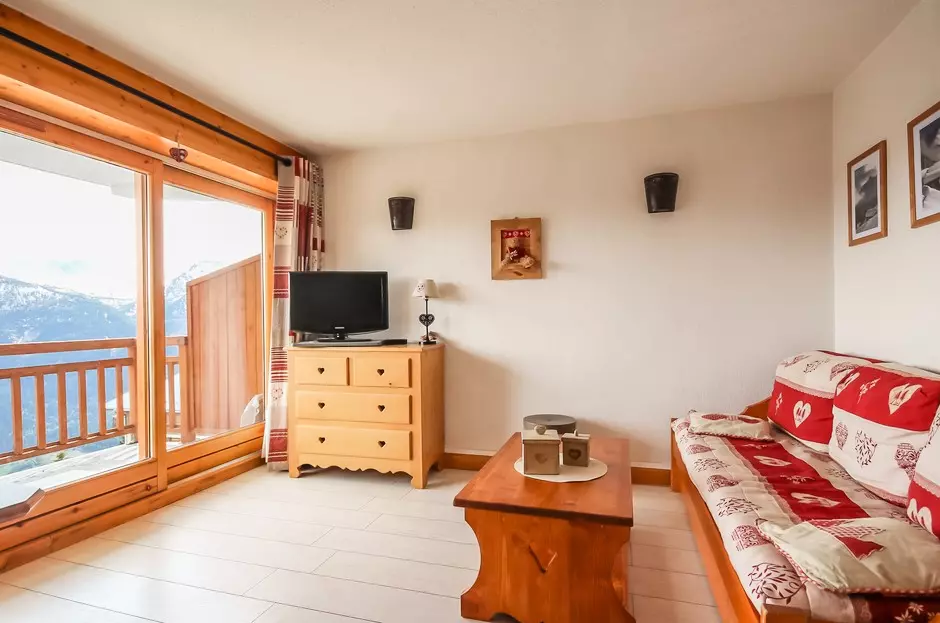 2-room apartment of 35m² for 6 people. It is located on the 2nd floor of the building and has a south-facing balcony with a view of the Haute Tarentaise valley.