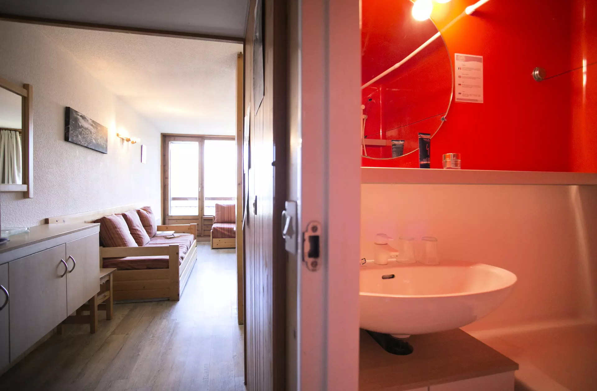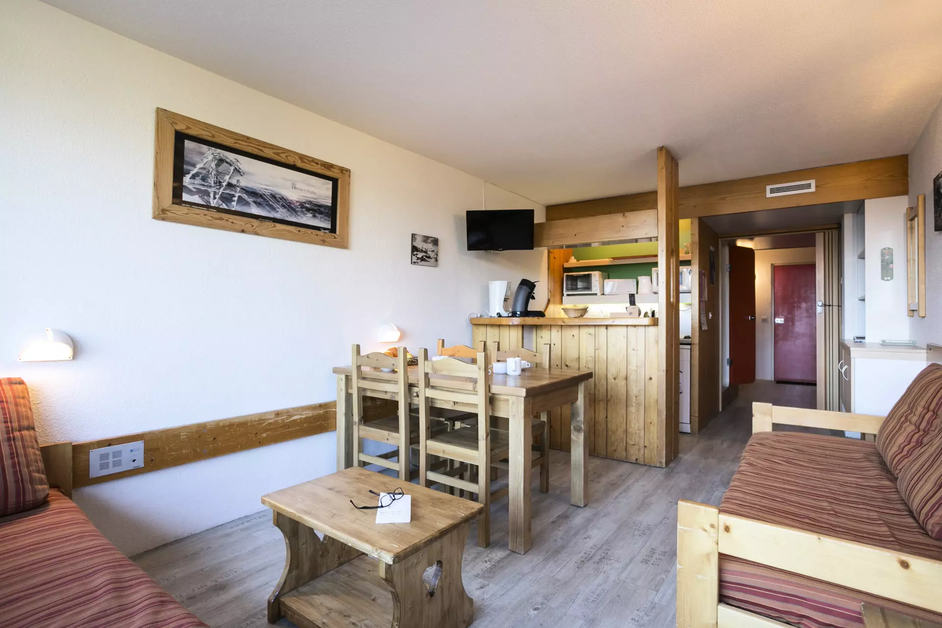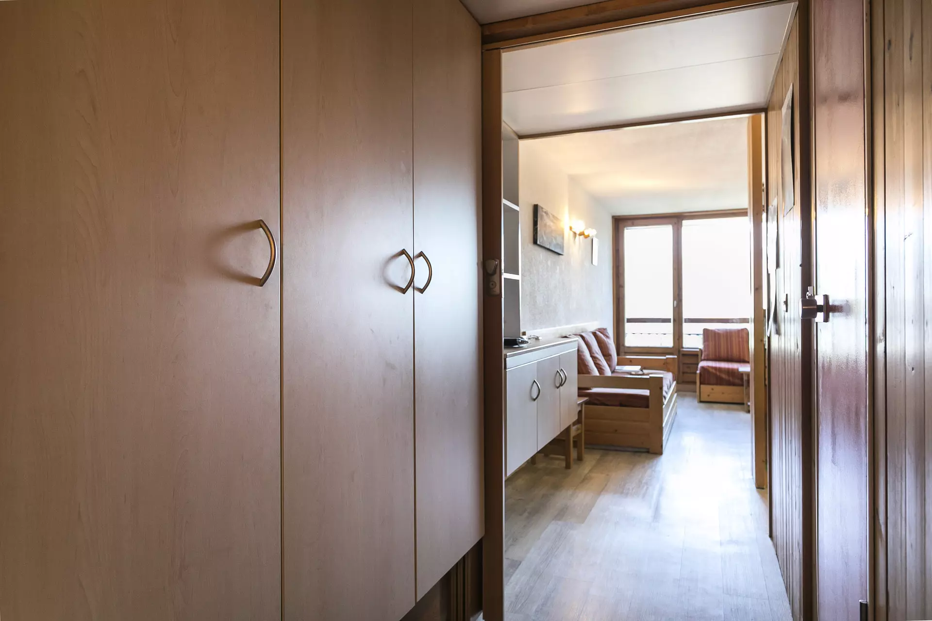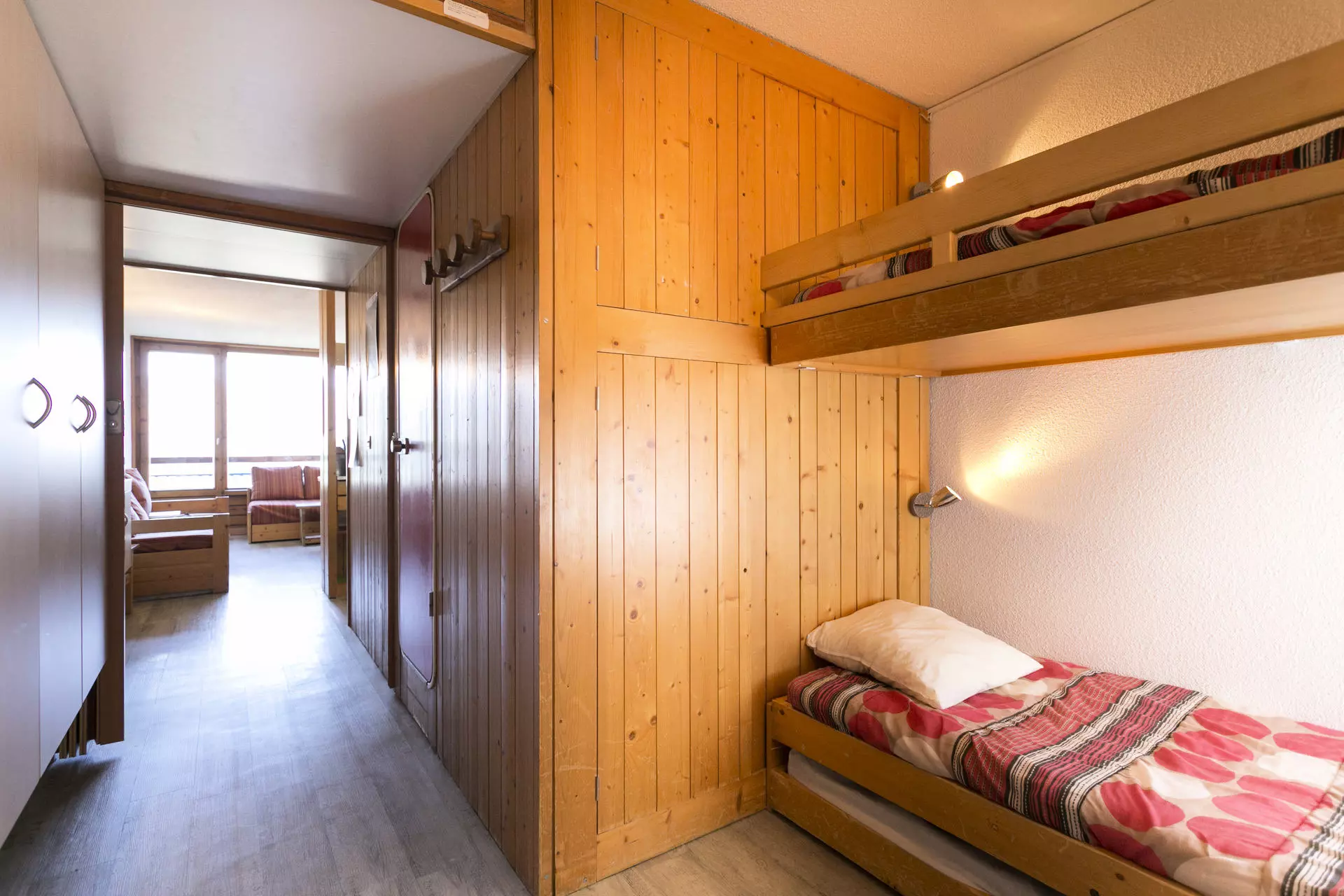 Studio comprising an entrance hall equipped with 2 bunk beds (the bed is not suitable for children under 6 years old) + 1 pull-out bed