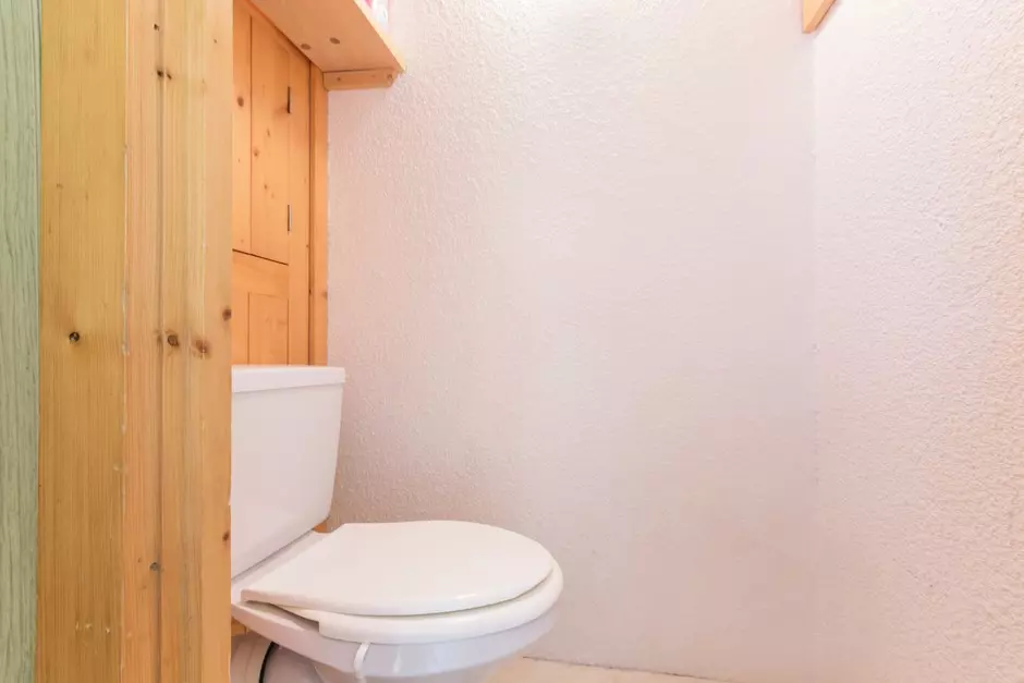 Small "boat" type shower cubicle and a separate toilet