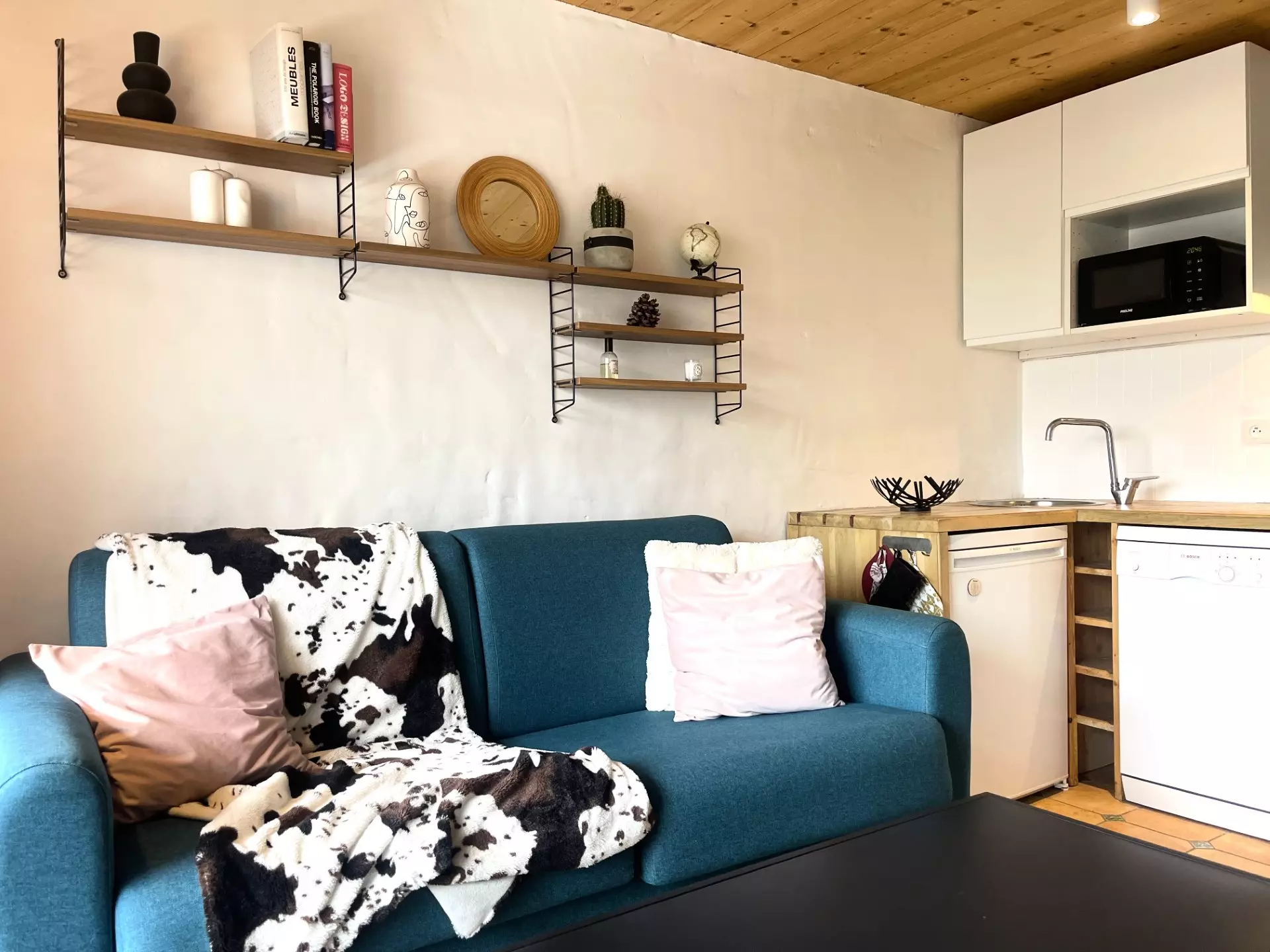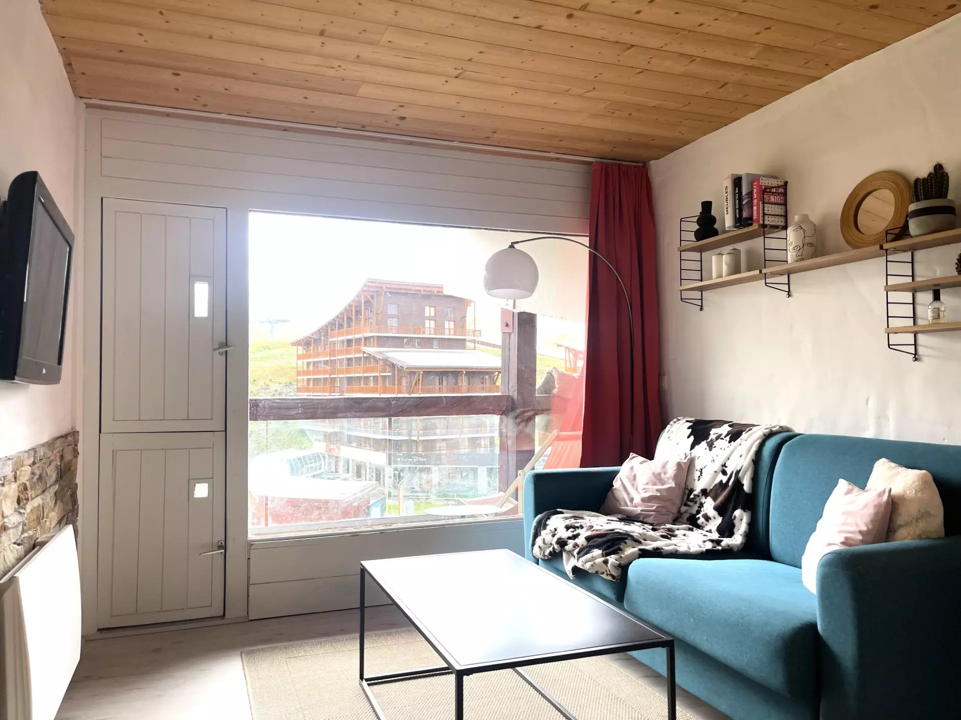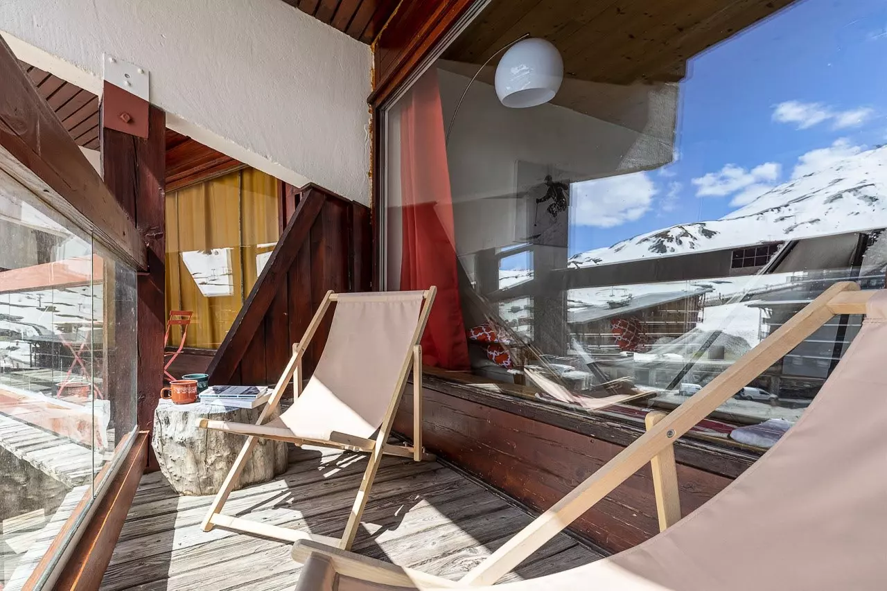 Furnished and equipped studio cabin for 4 people, fully renovated, with a surface area of 28m², located on the 4th floor of the Aiguille Rouge residence, with a south-facing balcony.
