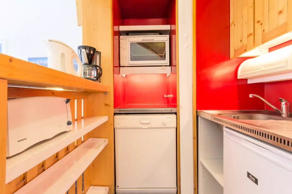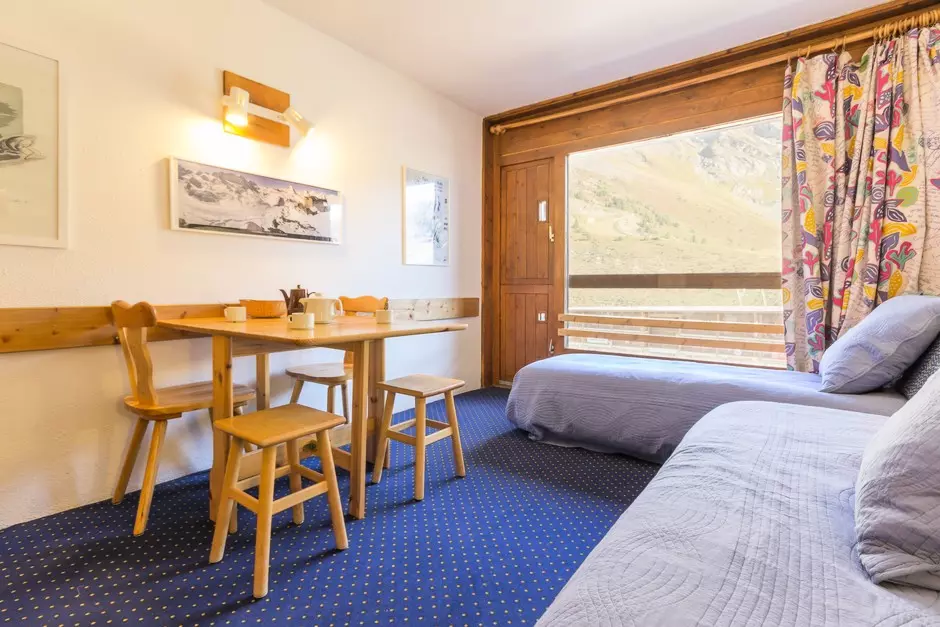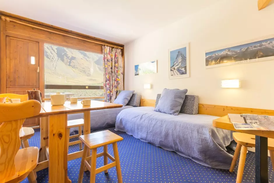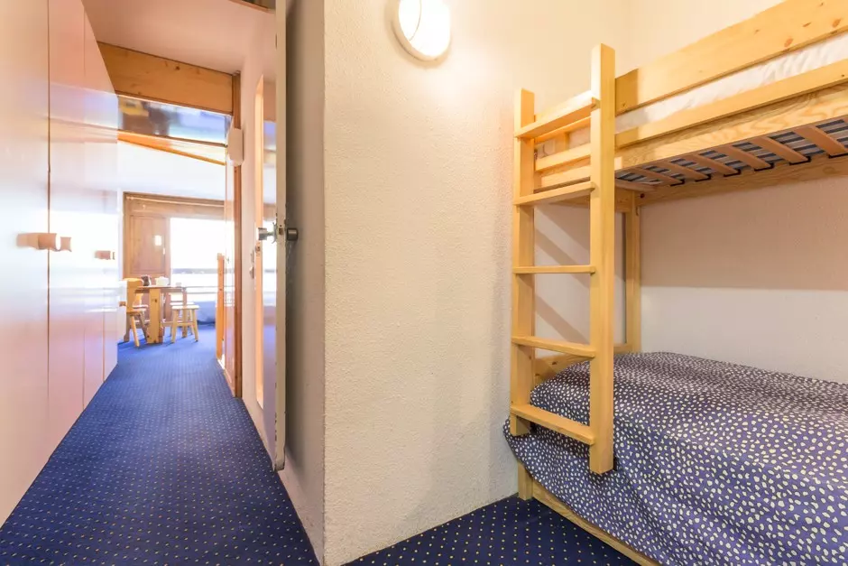 Furnished and equipped studio cabin for 4 people, with a surface area of 24m², located on the 4th floor of the Aiguille Rouge residence, with a south-facing balcony.