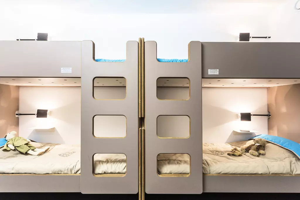 Cabin 1 with 4 bunk beds (the top bunk is not suitable for children under 6 years old)