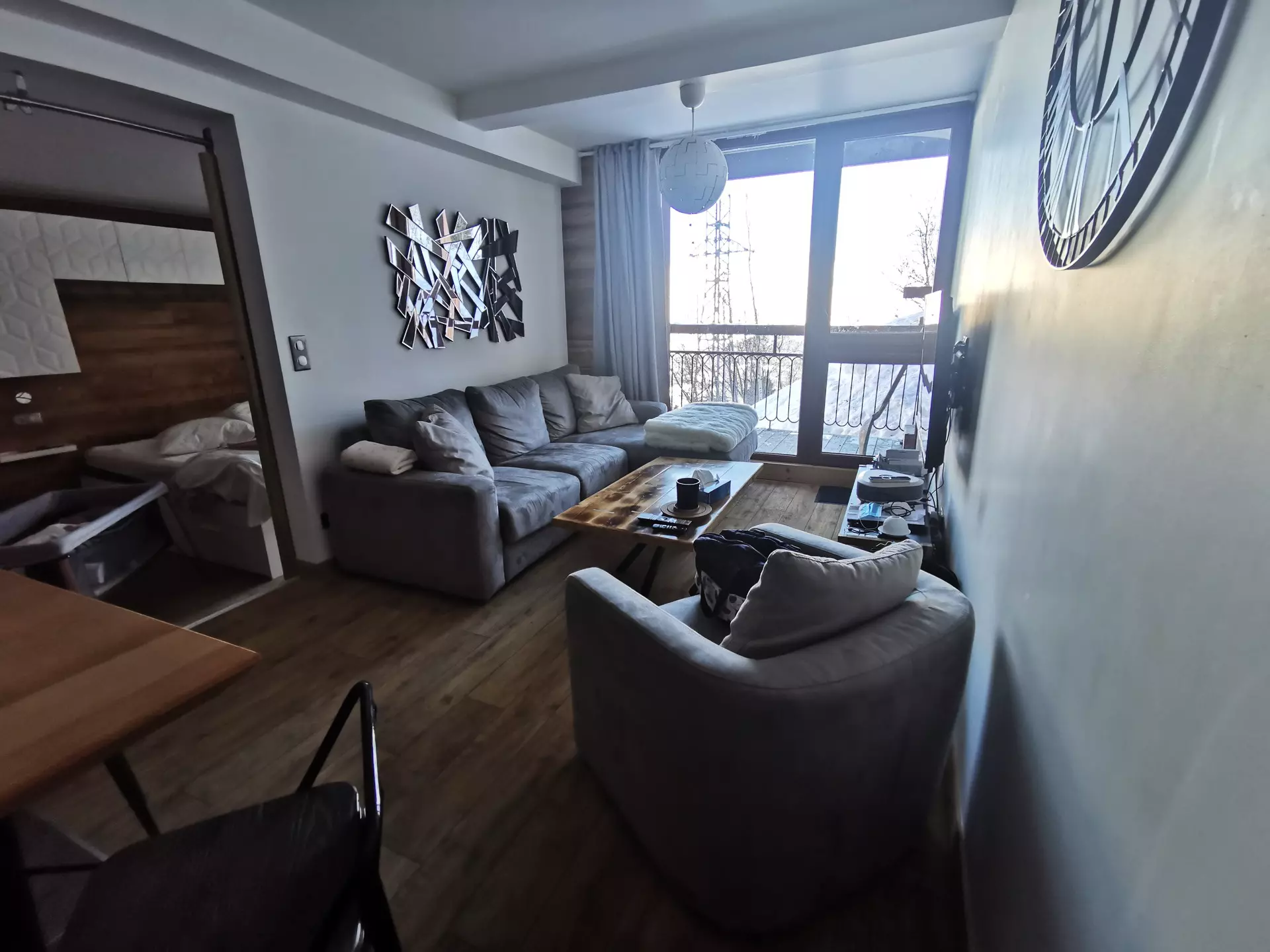 Renovated 3-room apartment of 56 m2 for 6/7 people, located on the 8th floor of the Varet 2 residence, balconies facing North/North-West with a view of Mont Blanc