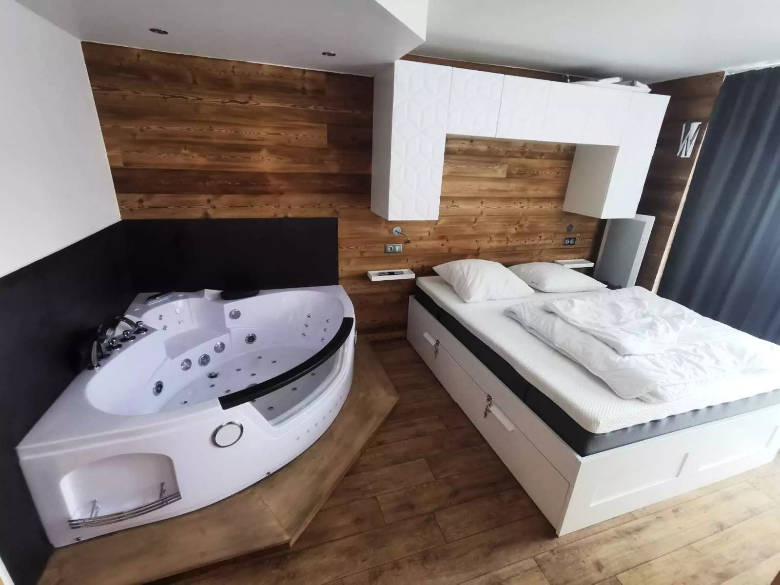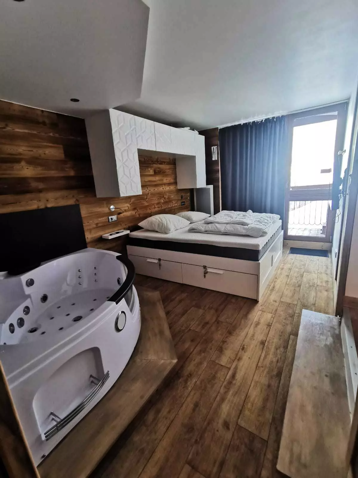 Bedroom with 1 double bed 160cm and a bathtub