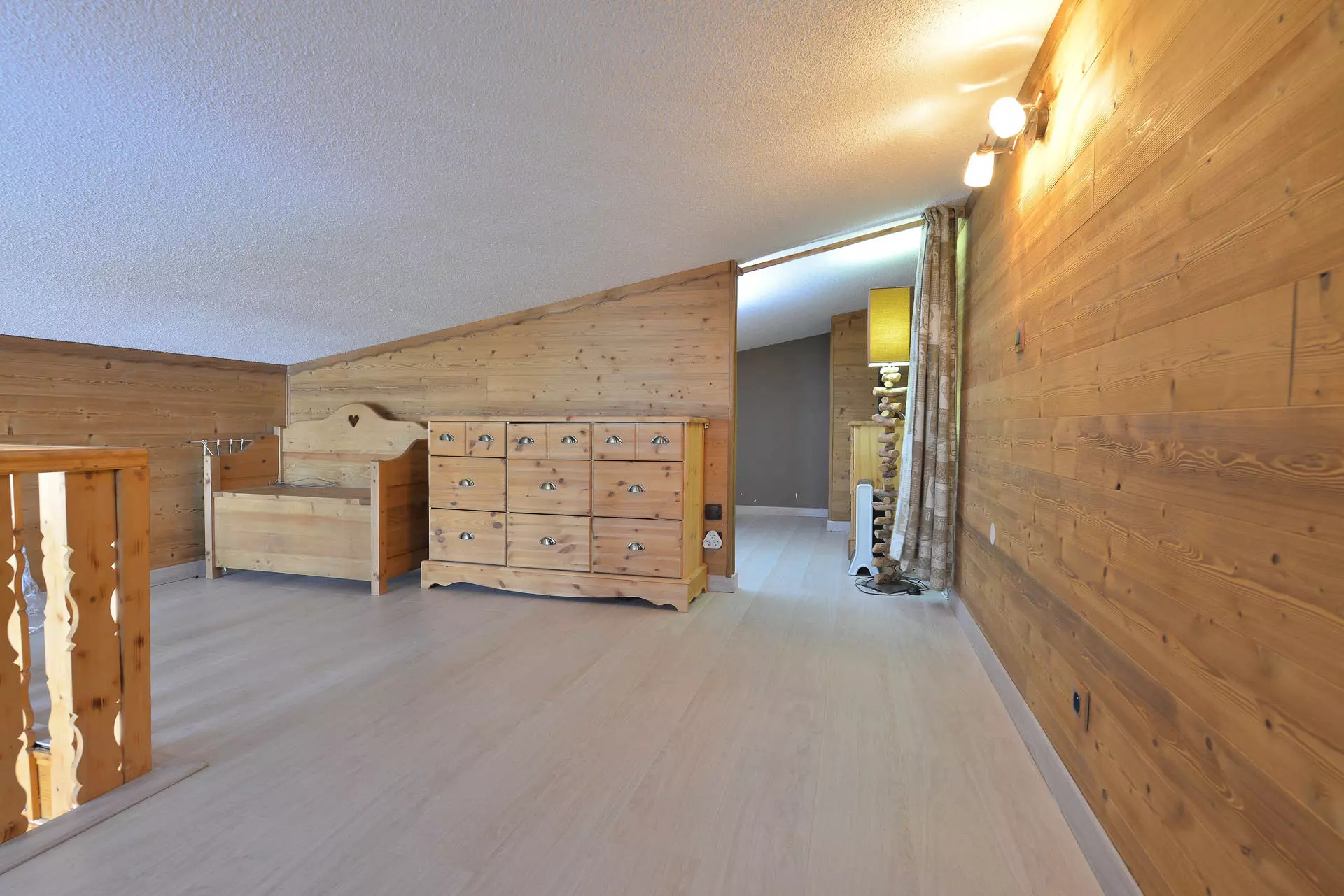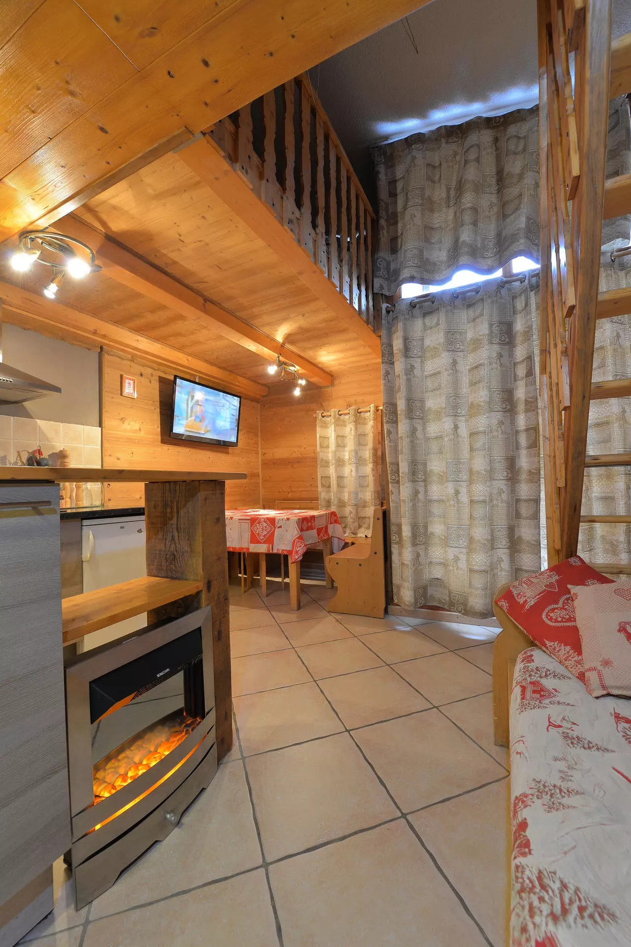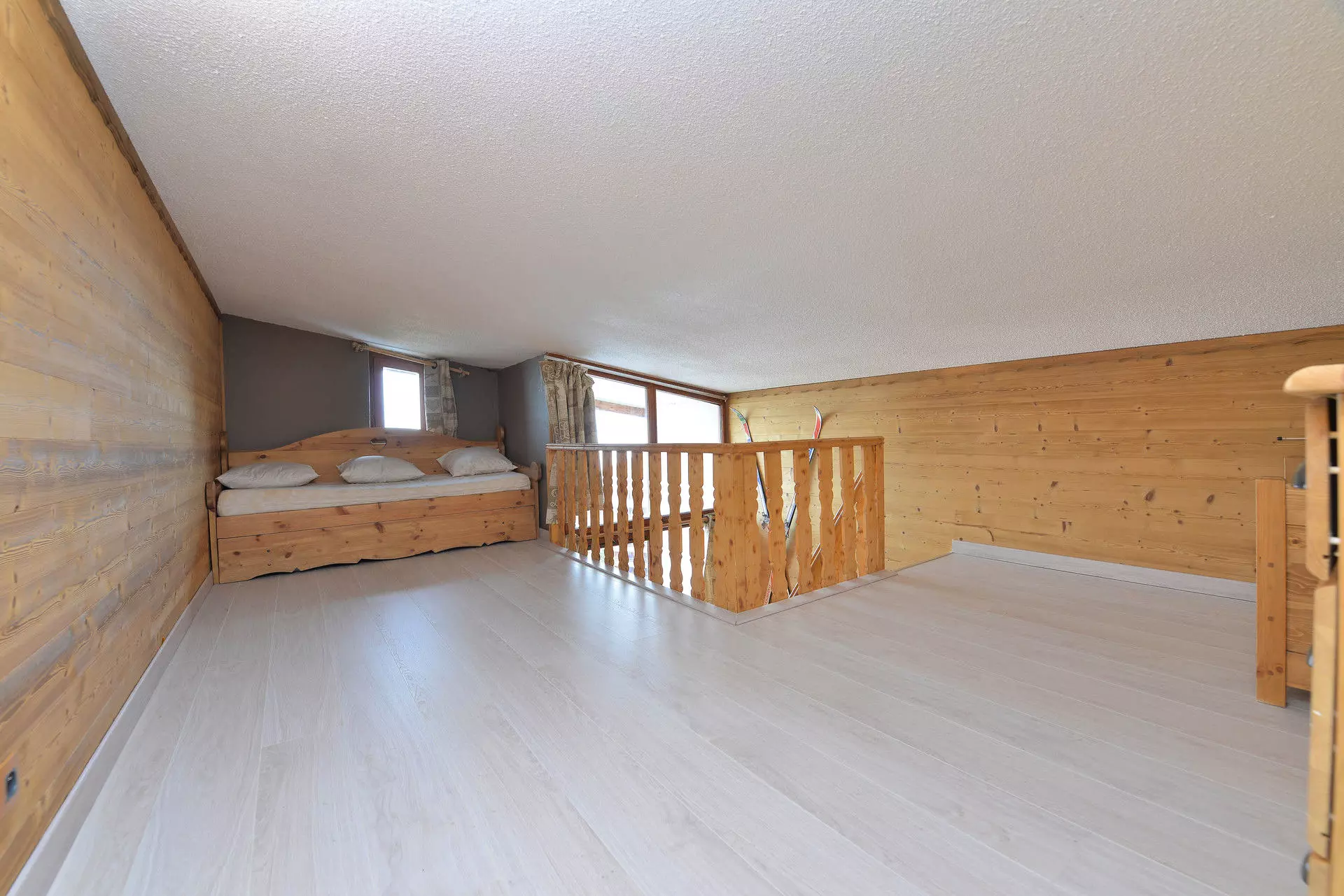 Studio cabin on the mezzanine equipped for 6 people, with a surface area of 22m², located in the center of the Arc 2000 resort, in the Fond Blanc residence on the 8th floor, north-facing balcony.