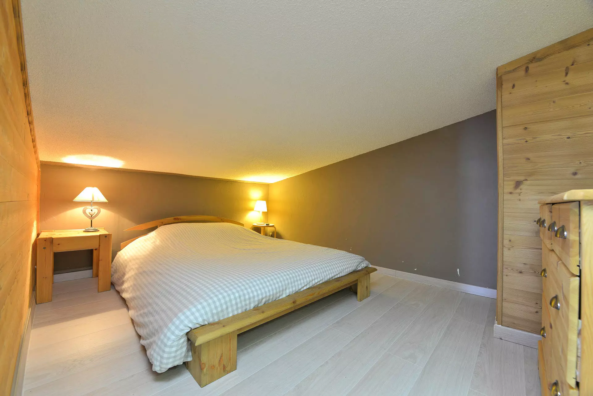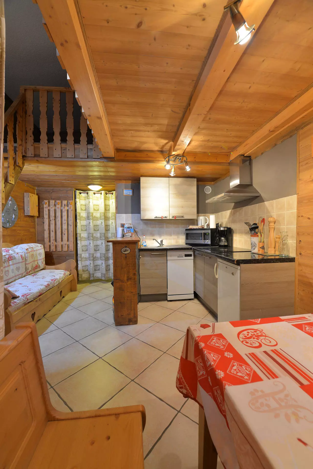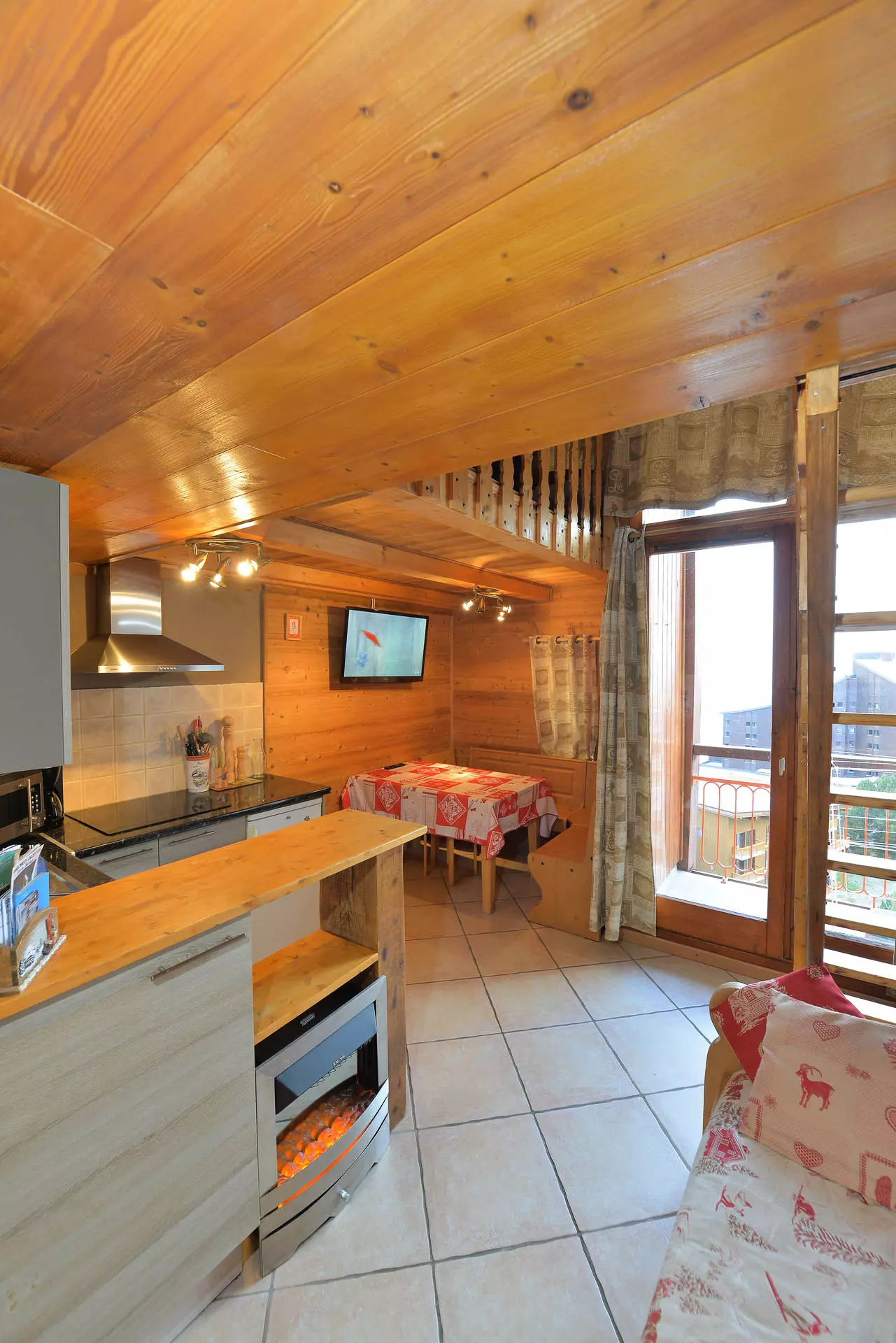Studio cabin on the mezzanine equipped for 6 people, with a surface area of 22m², located in the center of the Arc 2000 resort, in the Fond Blanc residence on the 8th floor, north-facing balcony.
