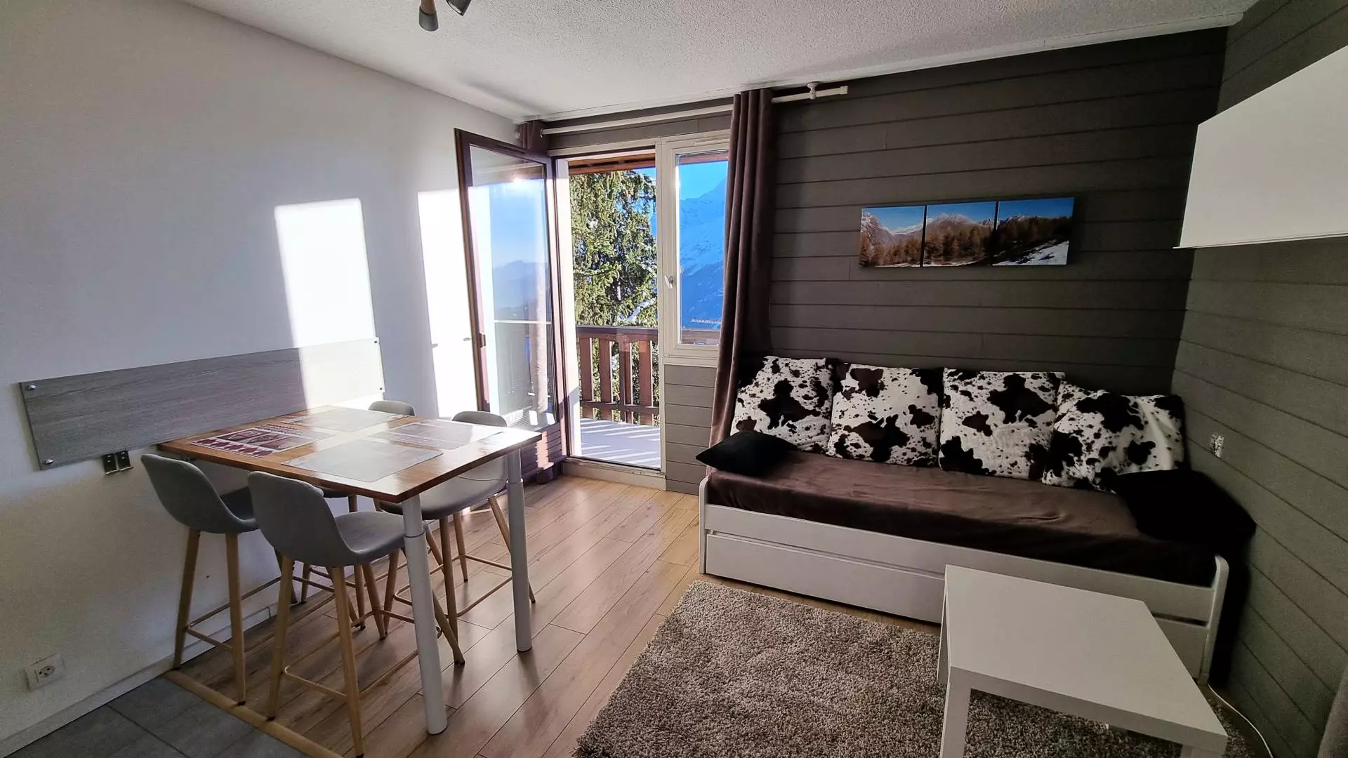 21m² studio cabin for 4 people. It is located in the Vanoise residence with ski-in ski-out access and has an 8m² south-facing balcony.