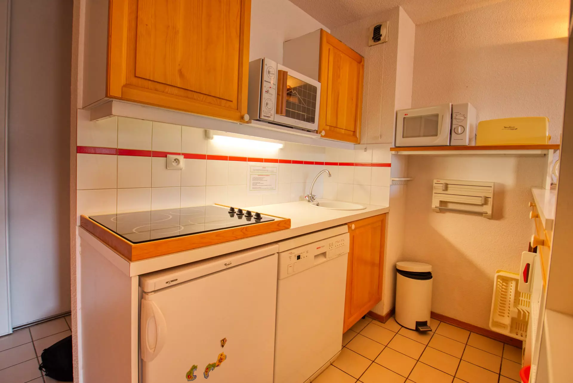 A top-of-the-range refrigerator, ceramic hobs, a dishwasher, an oven, and a microwave. You'll also have access to a fondue set, a raclette set, an electric kettle, a filter coffee maker, and a Krups Nespresso coffee maker. All necessary dishes and cookware are provided for preparing your meals.