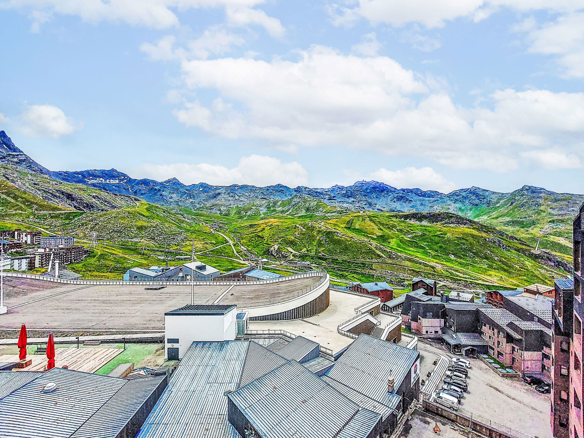 Residence "Les Olympiades", 7 storeys. In the centre of Val Thorens, in the resort, in a central, busy, sunny position in the residential district, 100 m from the skiing area. In the complex: lift, storage room for skis. In Winter: please take snow chains. Public car park at 50 m, extra. E-charging station. Shop, grocery, supermarket, shopping centre, restaurant 5 m, bar 50 m, bakery, café 5 m, pedestrian zone 2 m, bus stop "navette gratuit" 200 m, outdoor swimming pool 50 m. Sports centre 10 m, cable car 150 m, chair lift 50 m, gondola lift 10 m, slopes 50 m, ski rental 5 m, ski bus stop 150 m, ski school 100 m, ice rink 500 m. Nearby attractions: Centre Sportif 100 m. Well-known ski regions can easily be reached: domaine des 3 Vallées 100 m, Val Thorens – Orelle 100 m. Well-known lakes can easily be reached: Lac du Lou 800 m, Lac du Menuires 600 m. Please note: entertainment in the season. Suitable for families, baby equipment on request (extra). The owner does not accept any youth groups. Ski bus (free of charge). In case of good snow conditions, the house is accessible on skis. The apartment is located in a zone with limited traffic. Additional accommodations can be booked.