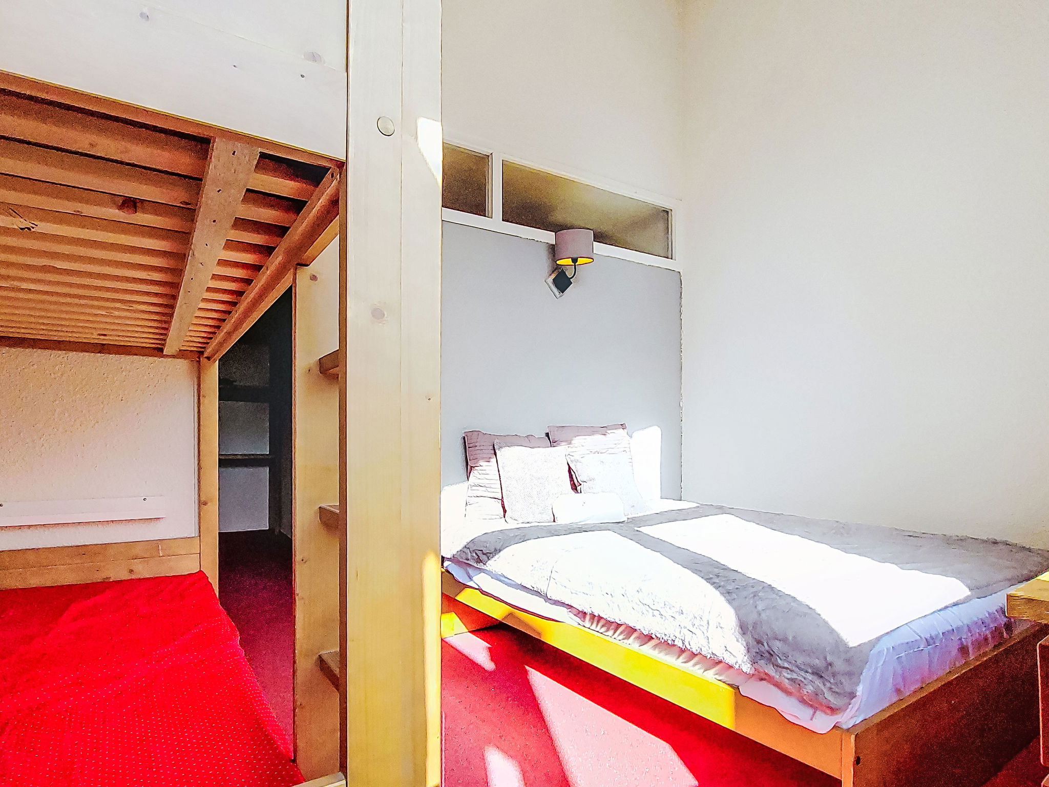 3-room maisonette 44 m2 on 7th floor, south facing position. Comfortable furnishings: living/dining room with 1 bed (80 cm, length 190 cm), 1 pull-out bed (2 pers. 2 x 80 cm, length 190 cm), TV. Exit to the balcony, south facing position. Kitchenette in the entrance (2 hot plates, dishwasher, toaster, kettle, microwave, electric coffee machine) with dining table. Bathroom, sep. WC. Electric heating. Upper floor: (spiral staircase), 1 room with 1 x 2 bunk beds (80 cm, length 190 cm), 1 double bed (1 x 140 cm, length 190 cm). Exit to the balcony, south facing position. Sleeping alcove with 1 x 2 bunk beds (80 cm, length 190 cm). Shower/WC. Electric heating. Carpet. Large balcony 4 m2, south facing position. Very beautiful panoramic view of the mountains, the valley and the ski run. Facilities: safe, children's high chair, baby cot (extra), hair dryer. Internet (WiFi, extra). Please note: suitable for families. Fridge without freezer, non-smokers only. Smoke alarm. Offer by a private individual according to Art. 155, IV of CGI. 73257010817WF