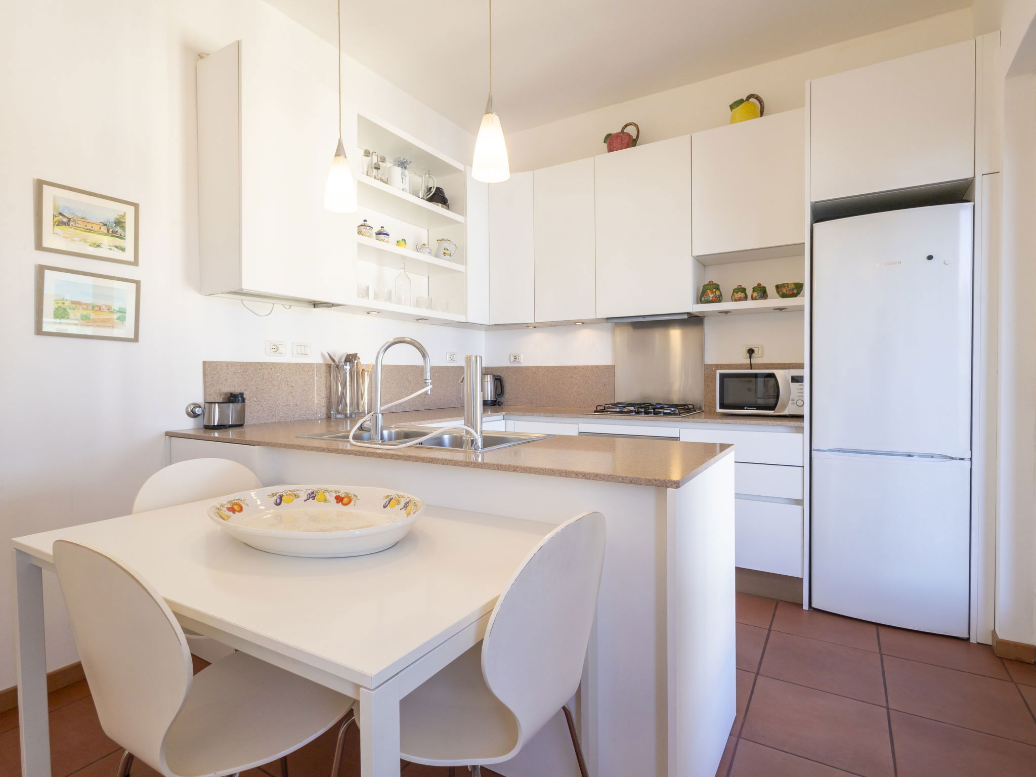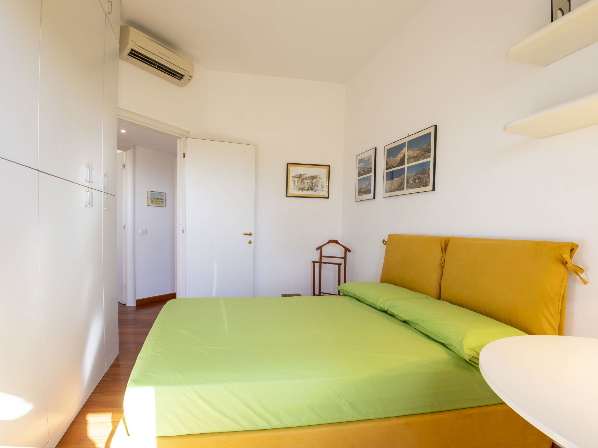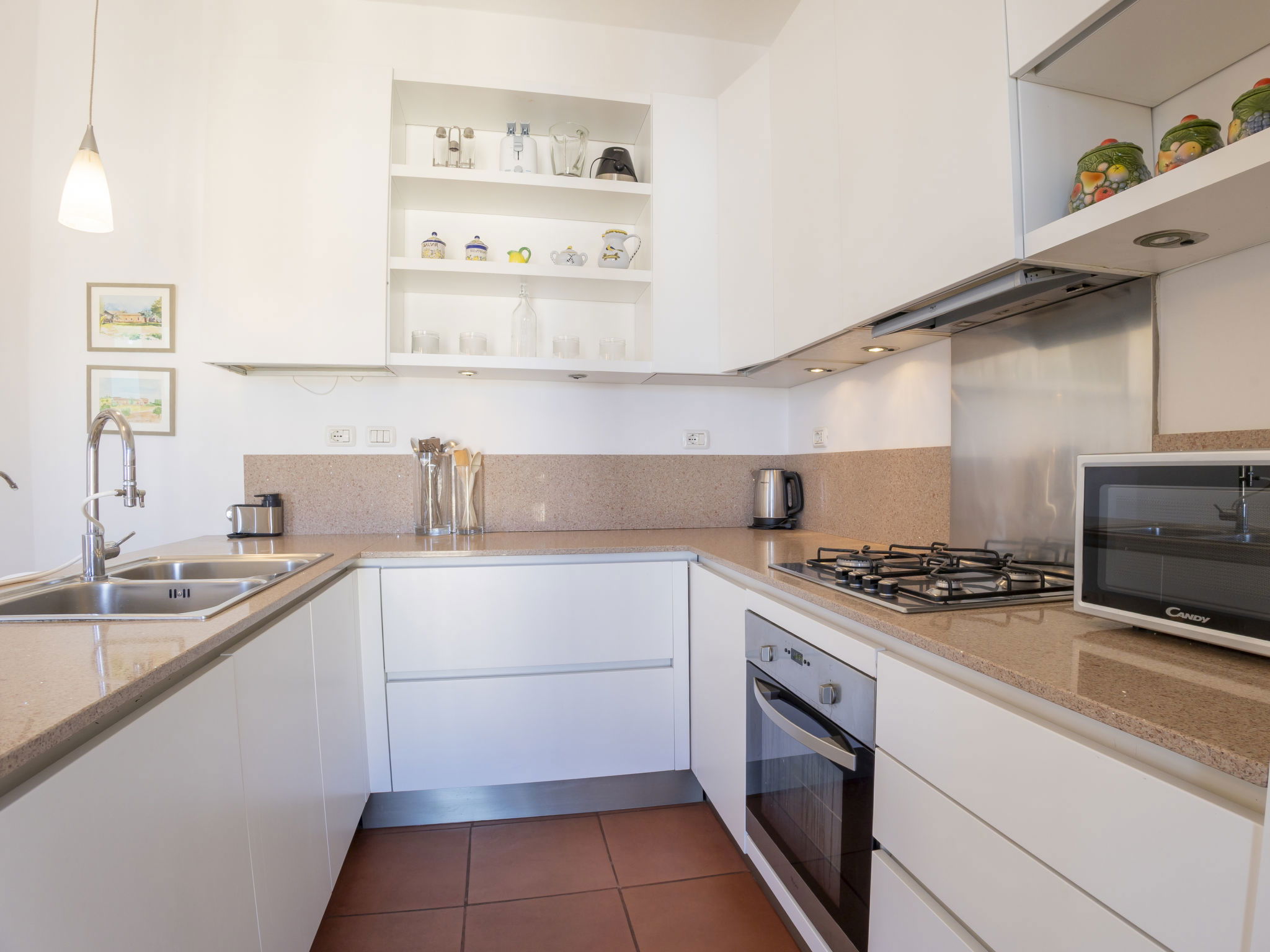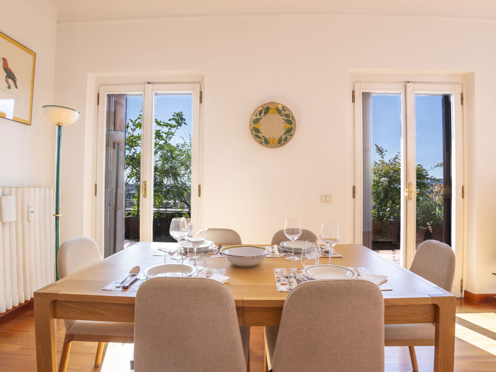 3-room penthouse 104 m2 on 7th floor. Spacious and bright, modern and stylish furnishings: large living/dining room with dining table and TV. Exit to the terrace. 1 room with 1 french bed (140 cm, length 200 cm). Exit to the terrace. 1 double bedroom. Exit to the terrace. Large kitchen (oven, dishwasher, 4 gas rings, toaster, kettle, microwave, freezer, electric coffee machine, Capsules for coffee machine (Nespresso) free) with dining table. Exit to the balcony. Bath/bidet/WC, shower/WC. Heating, air-conditioning. Parquet floors. 2 balconies, terrace 50 m2. Terrace furniture. Beautiful panoramic view of the city. Facilities: washing machine, dryer, iron, children's high chair, baby cot, hair dryer. Internet (WiFi, free). Please note: suitable for families. Non-smokers only. Smoke alarm, fire extinguisher. IT015146C2929CZVQ2