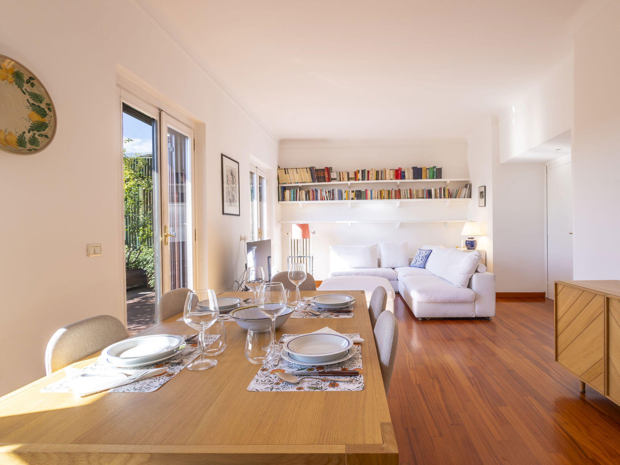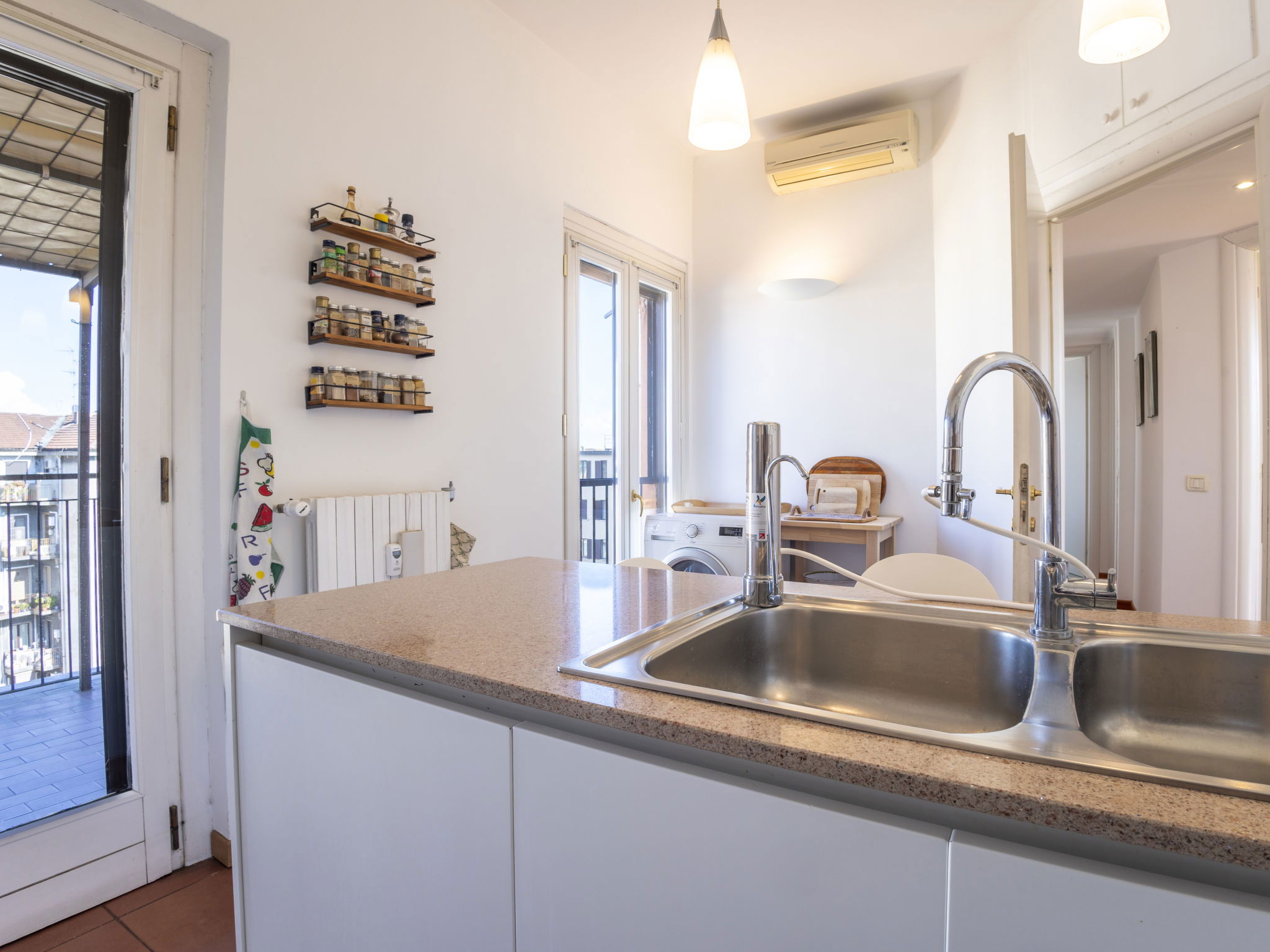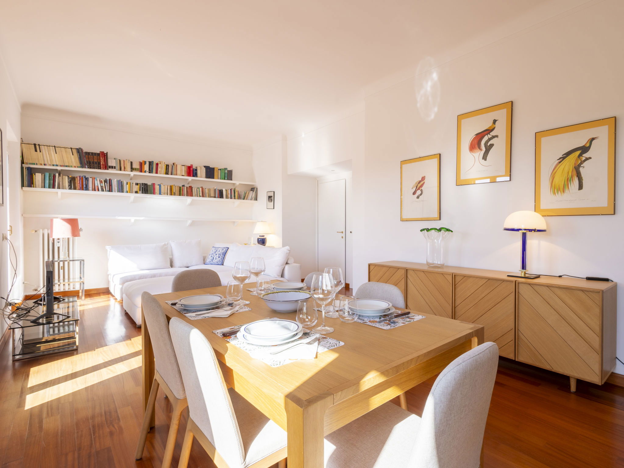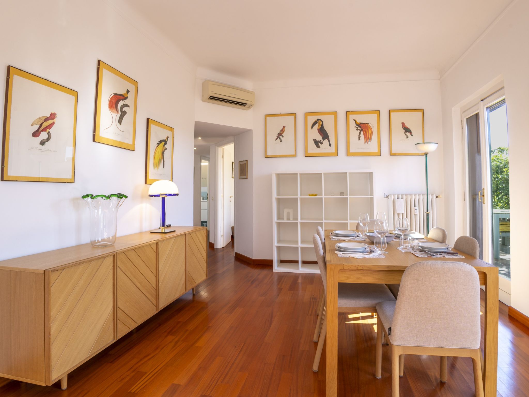 Comfortable apartment block "Bianca di Savoia Terrace View", 7 storeys. In the centre of Milano, in a sunny position in the residential district, excellent location: right in the centre but still quiet, in the heart of the city. In the house: lift, central heating system, heating available only from 15.Oct. - 15.Apr.. Single garage, public parking on the road extra. Parking space or garage only for small to medium-sized cars. Dimension: height 200 cm width 180 cm. Tram 450 m, bus stop 350 m, railway station "Cadorna (MXP Express Train)" 2.5 km, underground station "Crocetta (M3), Policlinico (M4)" 500 m, park "Ravizza" 500 m, thermal baths "Terme Milano" 1 km. Children's playground 500 m. Nearby attractions: Teatro Carcano 600 m, Navigli (canal district) 1 km, Basilica di Sant'Eustorgio 1.1 km, Piazza del Duomo 1.3 km, Castello Sforzesco/ Parco Sempione 2.4 km, Fiera Milano City/ MiCO 4.9 km. Well-known lakes can easily be reached: Lago di Como 50 km. Please note: lift to 6th floor. The apartment is located in a zone with limited traffic. Neighbourhood highly sensitive to noise. Quietness and good behaviour expected.