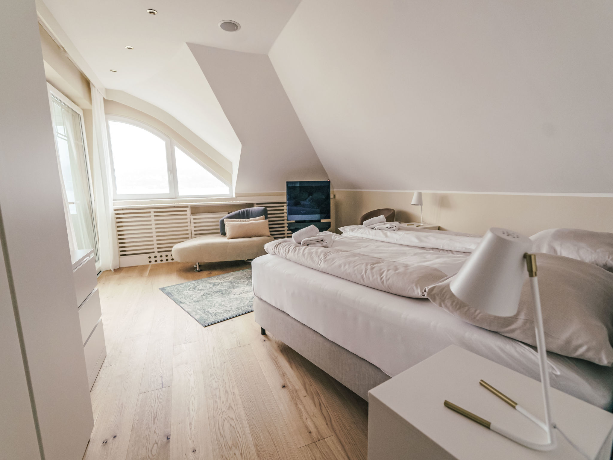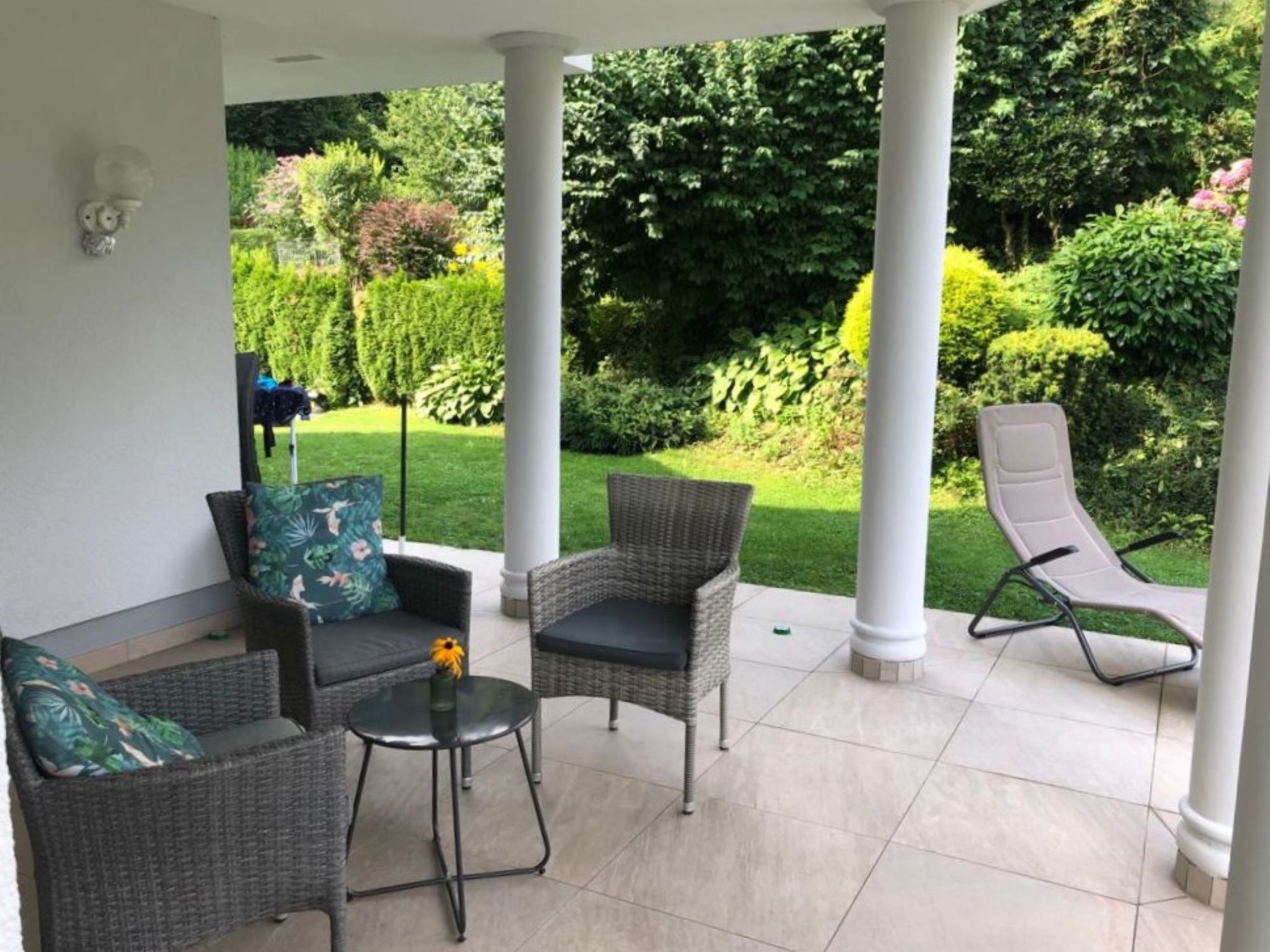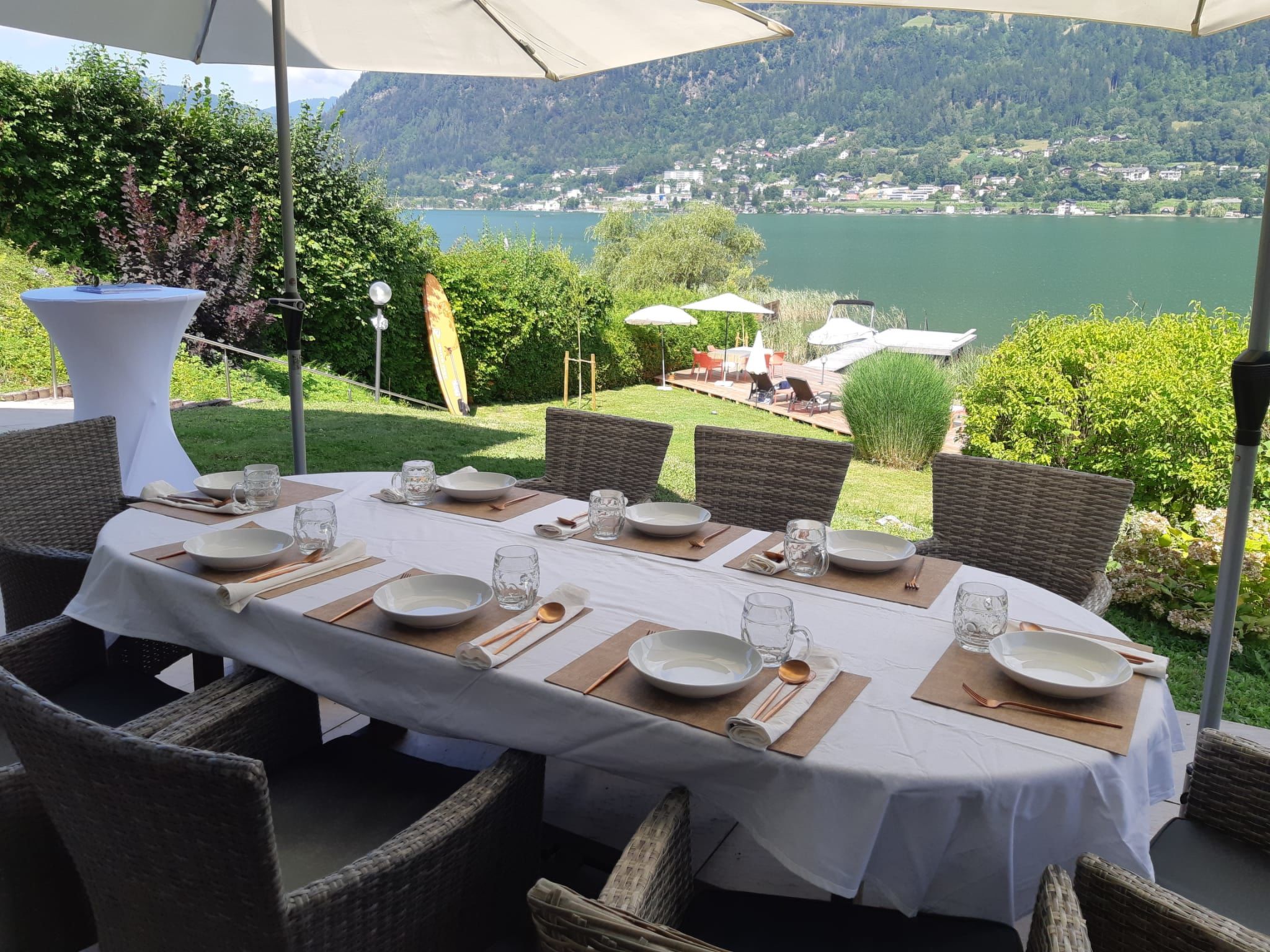 5-room villa 150 m2 on 2 levels. Object suitable for 6 adults + 2 children. Modern and tasteful furnishings: large living room with 1 double sofabed (140 cm, length 200 cm), TV (flat screen). 3 double bedrooms. Large, open kitchen (oven, dishwasher, 4 induction hot plates, toaster, kettle, electric coffee machine, steamer). Bath/WC, shower/WC. Heating, oil heating, air-conditioning. Terrace. Terrace furniture, deck chairs (2). Very beautiful panoramic view of the lake. Facilities: Internet (WiFi, free). Please note: non-smokers only. Smoke alarm.