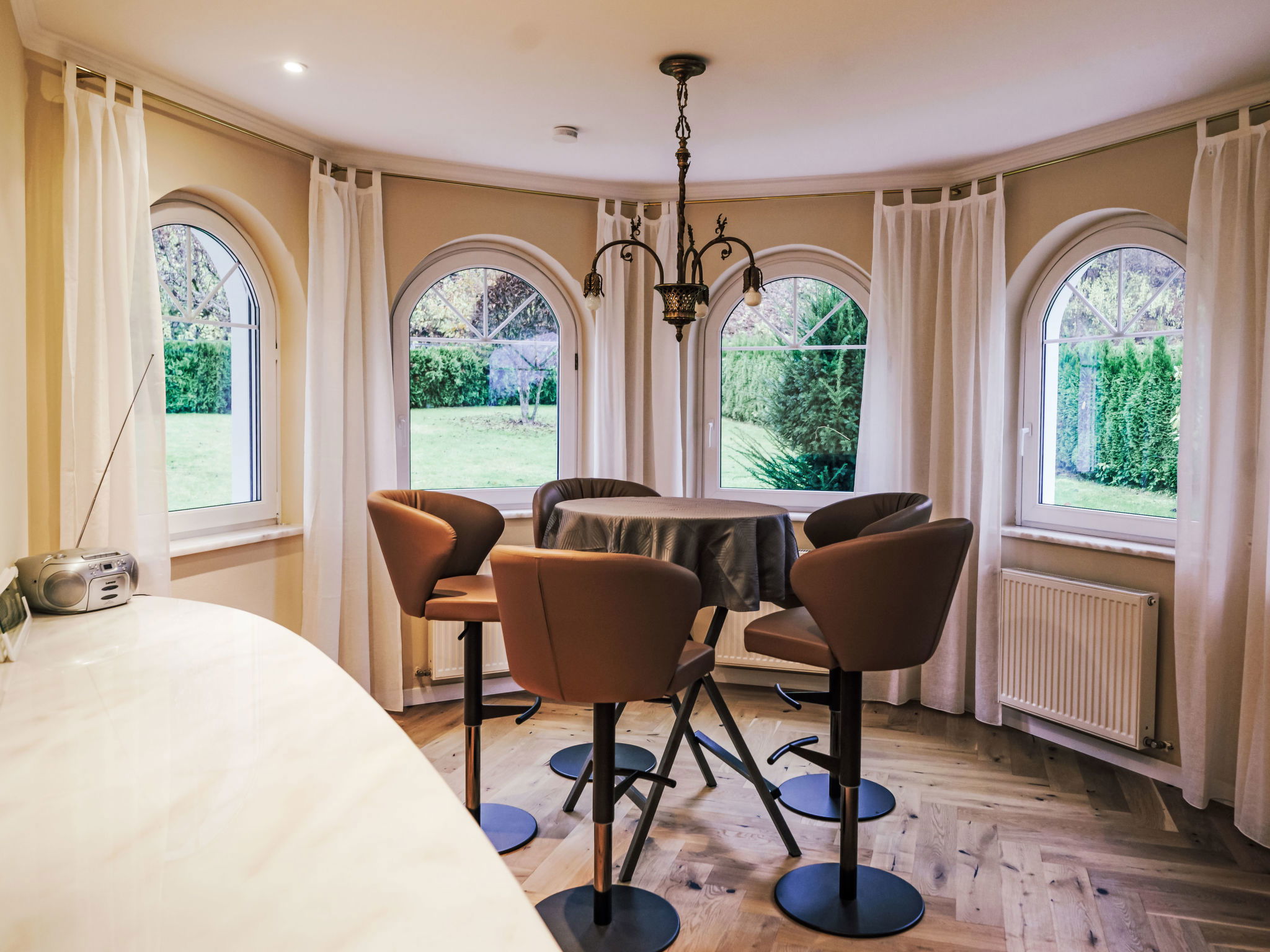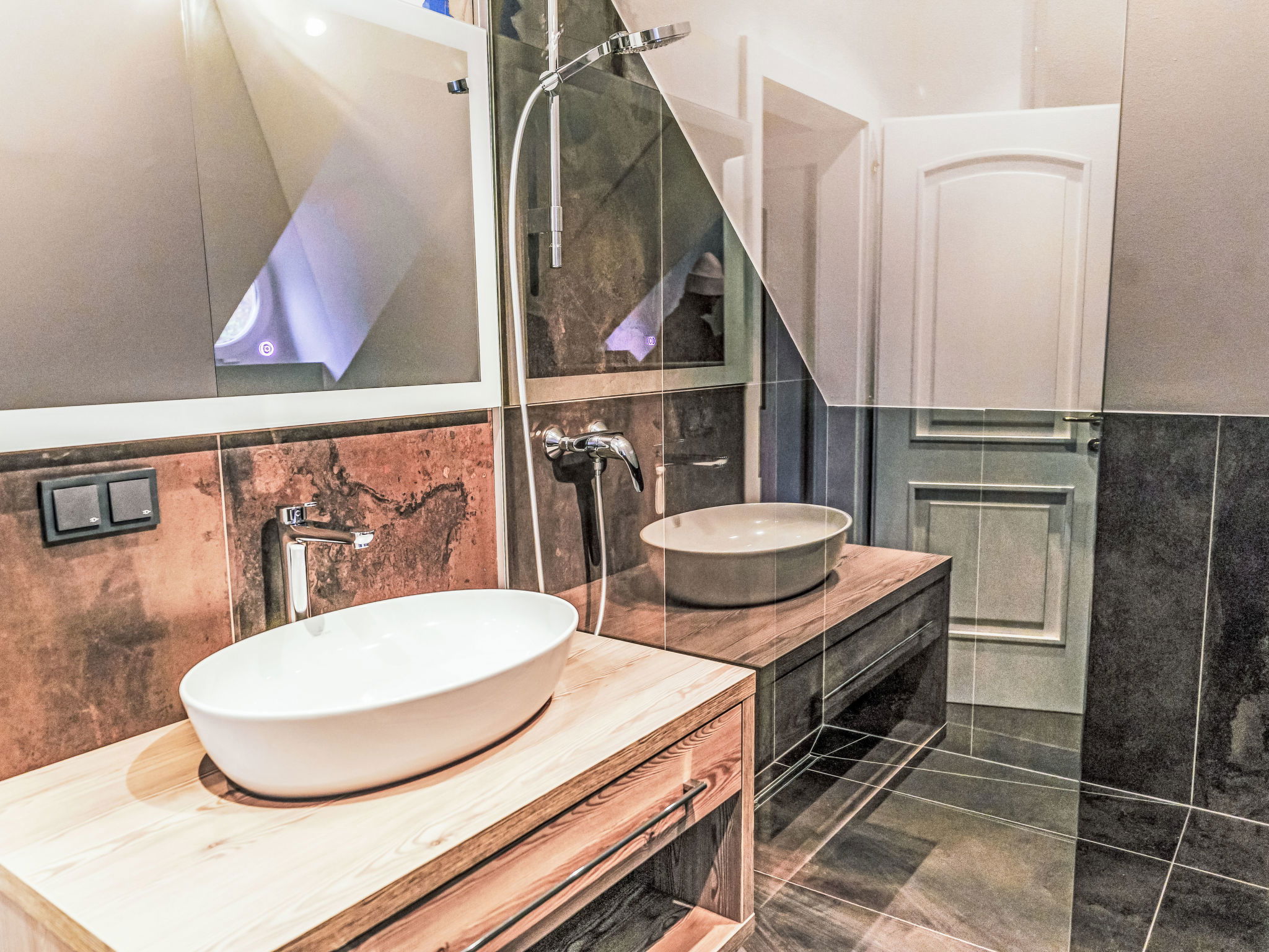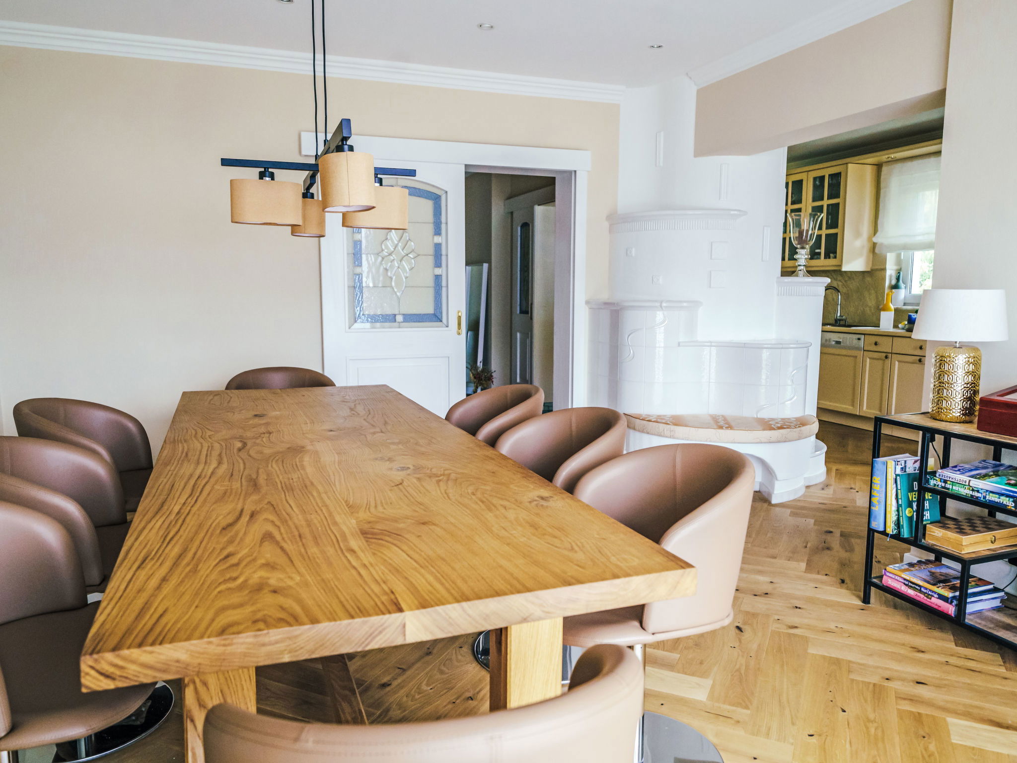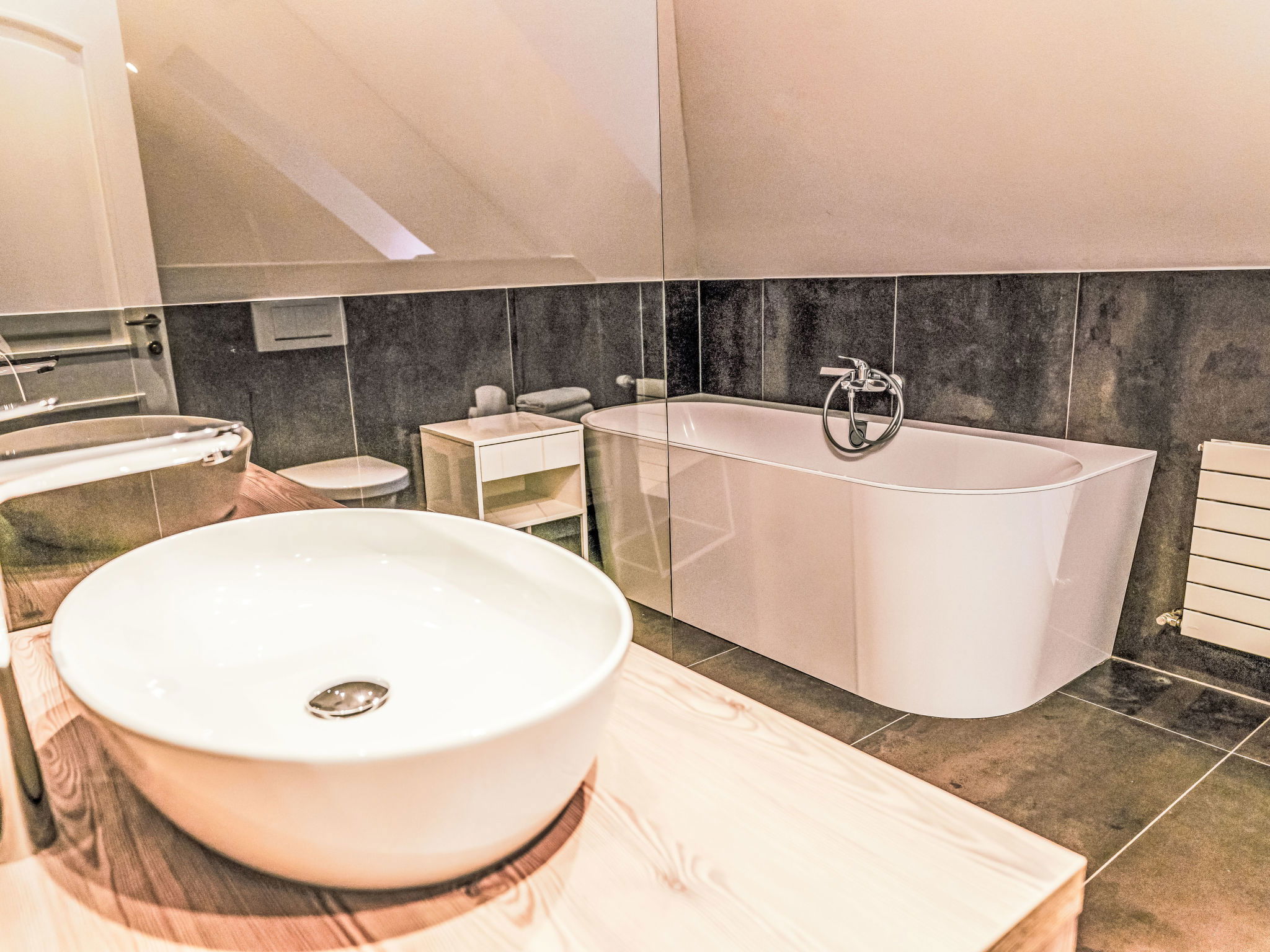 5-room villa 150 m2 on 2 levels. Object suitable for 6 adults + 2 children. Modern and tasteful furnishings: large living room with 1 double sofabed (140 cm, length 200 cm), TV (flat screen). 3 double bedrooms. Large, open kitchen (oven, dishwasher, 4 induction hot plates, toaster, kettle, electric coffee machine, steamer). Bath/WC, shower/WC. Heating, oil heating, air-conditioning. Terrace. Terrace furniture, deck chairs (2). Very beautiful panoramic view of the lake. Facilities: Internet (WiFi, free). Please note: non-smokers only. Smoke alarm.
