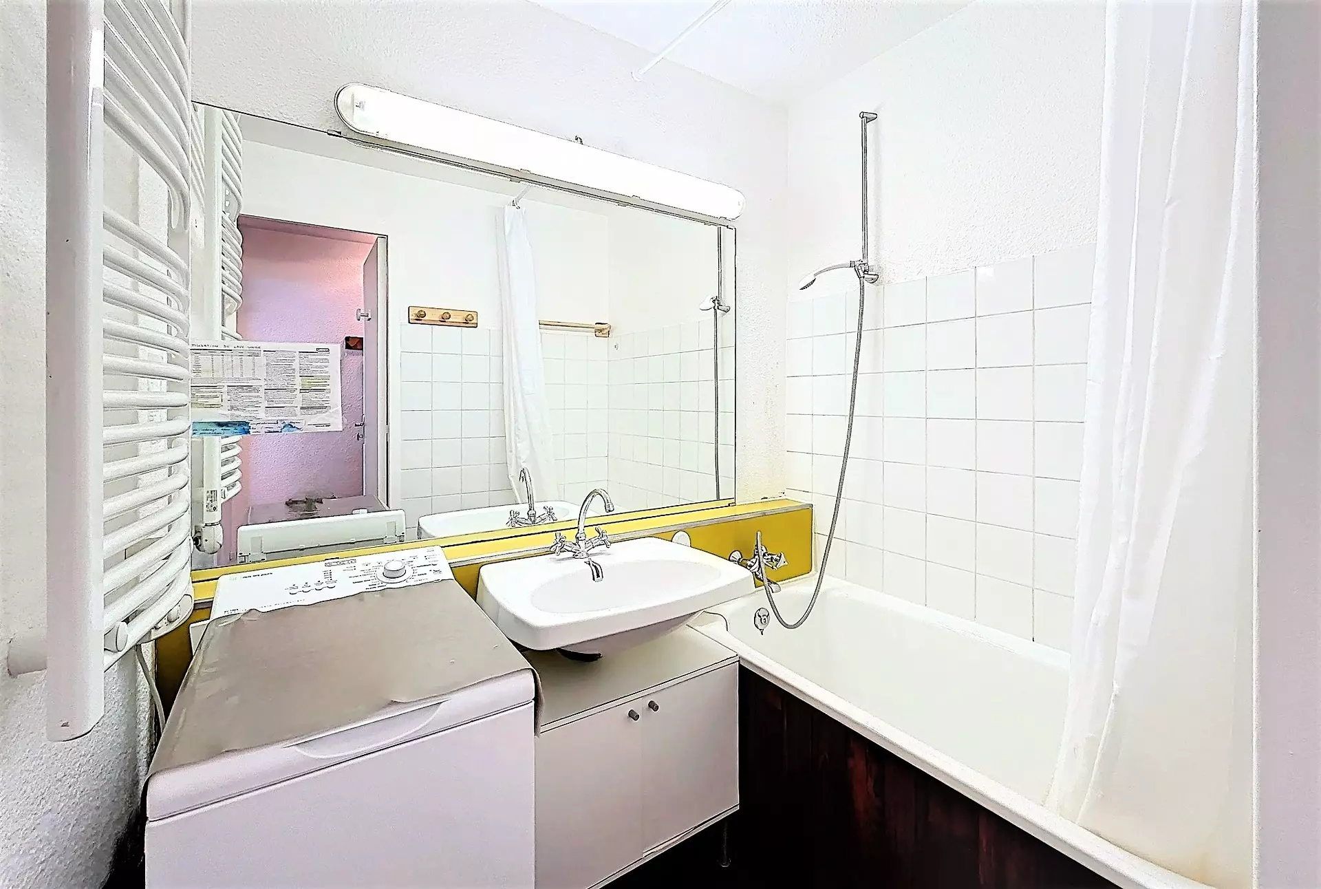 Renovated and well-equipped apartment, including an entrance hall with storage cupboard, a bathroom, a kitchen area with 2 electric hotplates, Senséo coffee maker + filter coffee maker and top refrigerator.