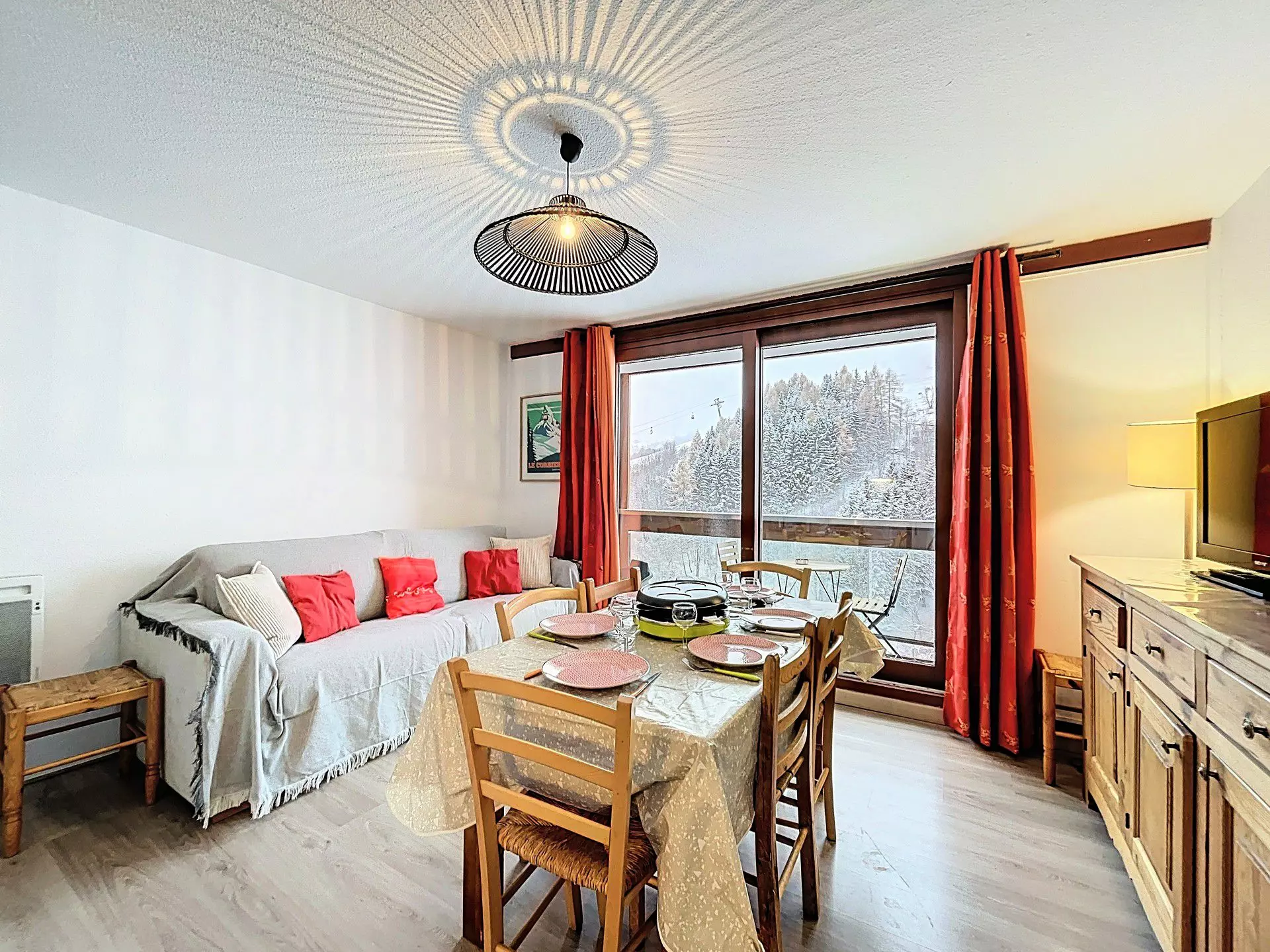 3-room apartment of 40m², for 6 people, Located in the Zodiaque Residence, on the 15th floor, South-facing balcony, snow front and swimming pool view