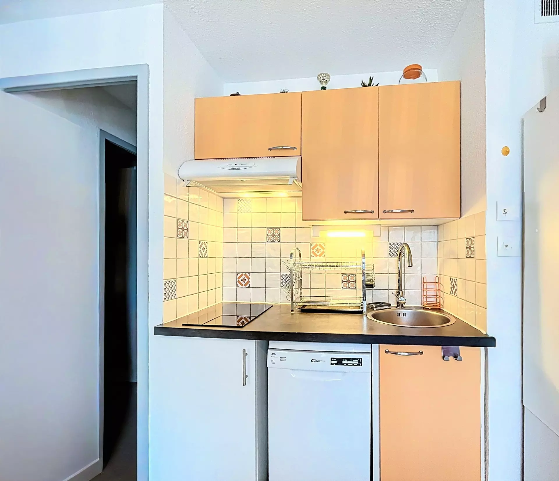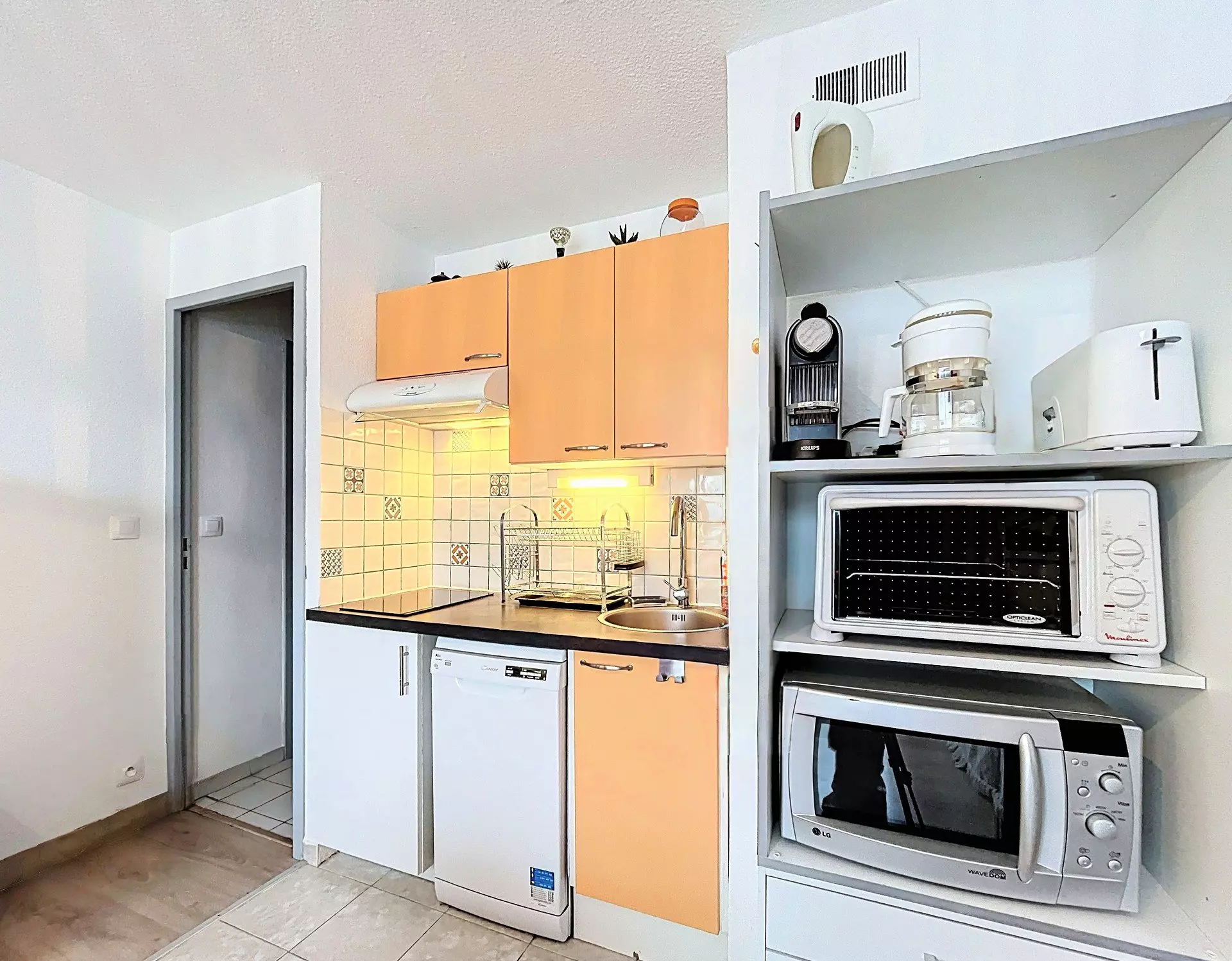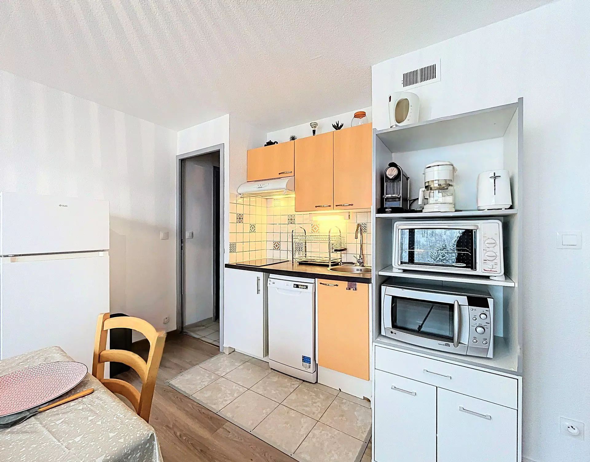 The kitchenette area is equipped with electric hotplates, a microwave, and a mini oven, a filter coffee maker and a Nespresso®, a dishwasher and a large fridge with freezer compartment, raclette machine and fondue set.