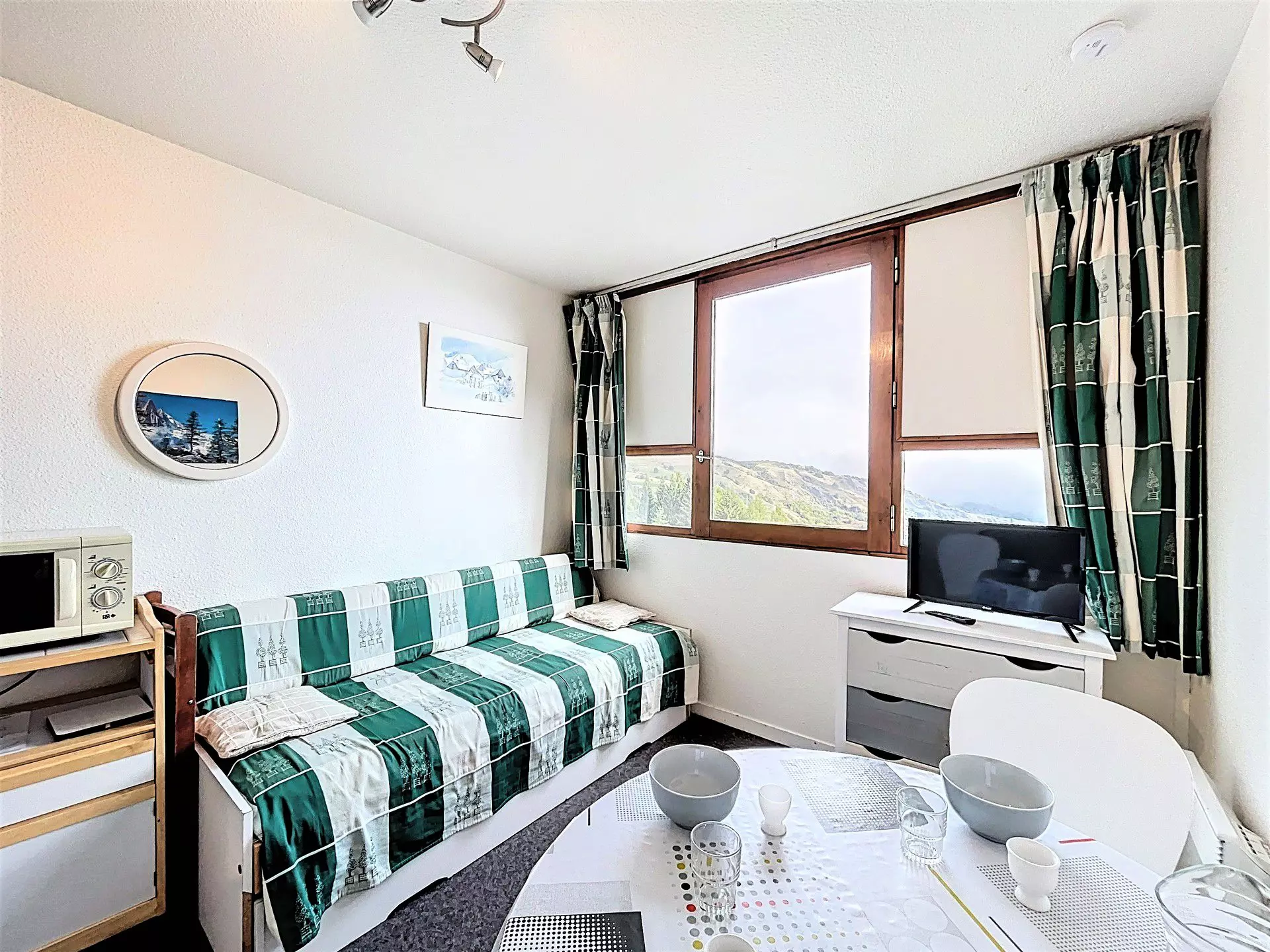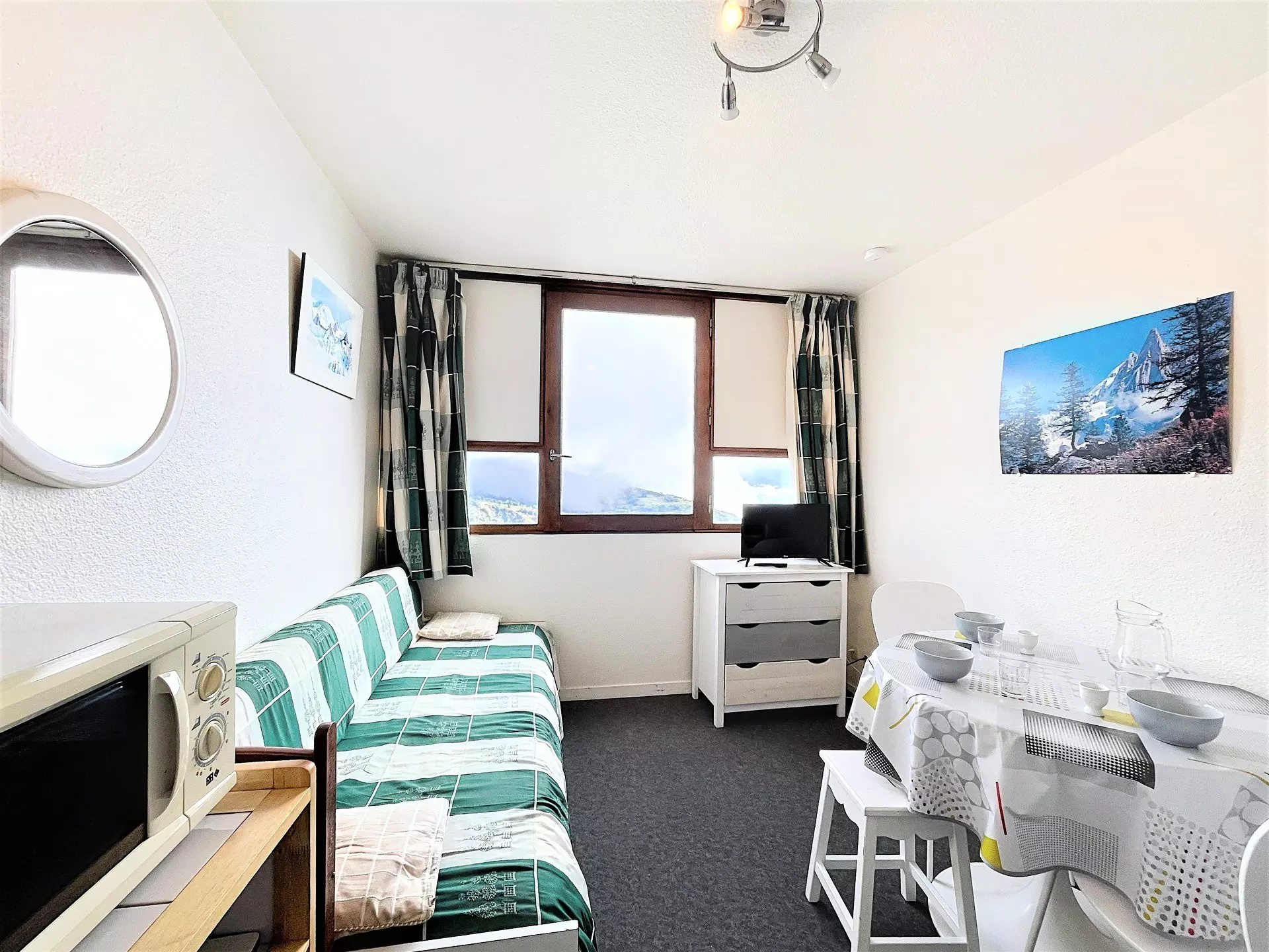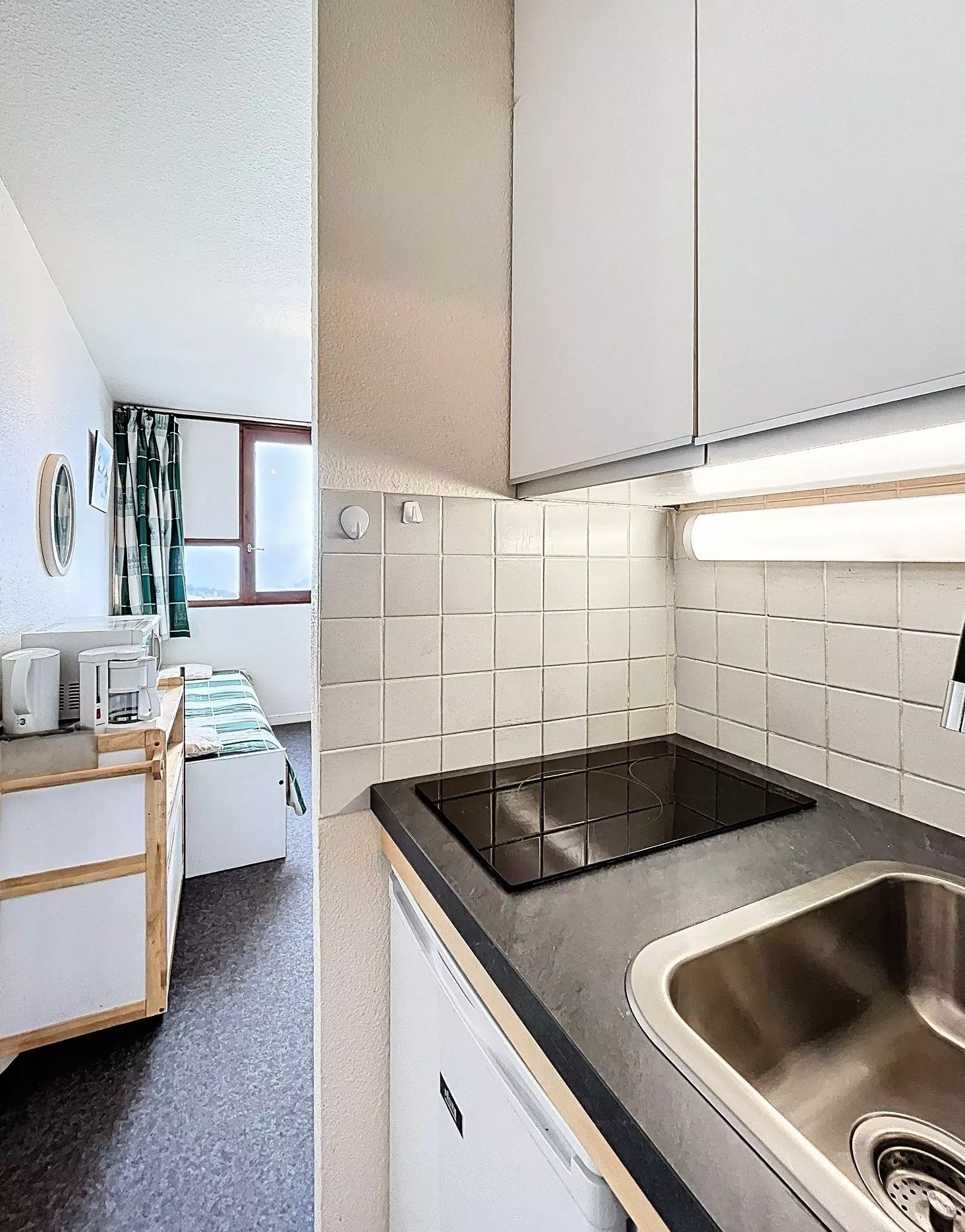 Studio, 16m², for 2/3 people, Located in the Zodiaque Residence, on the 9th floor, North facing, Mountain view, valley side. Accommodation classified 1* ministerial.