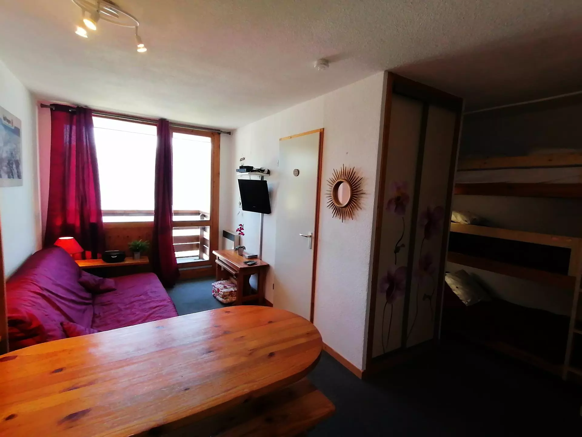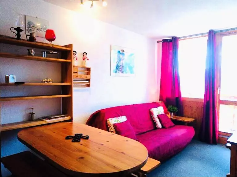 Residence "Le Chanteloup", on the slopes, quiet, pleasant and renovated apartment of 26m2, for 4 people, on the 1st floor without elevator with balcony overlooking the valley and having an individual ski locker on the ground floor.