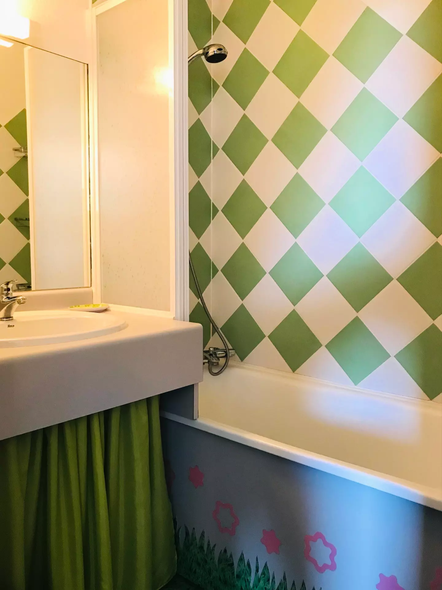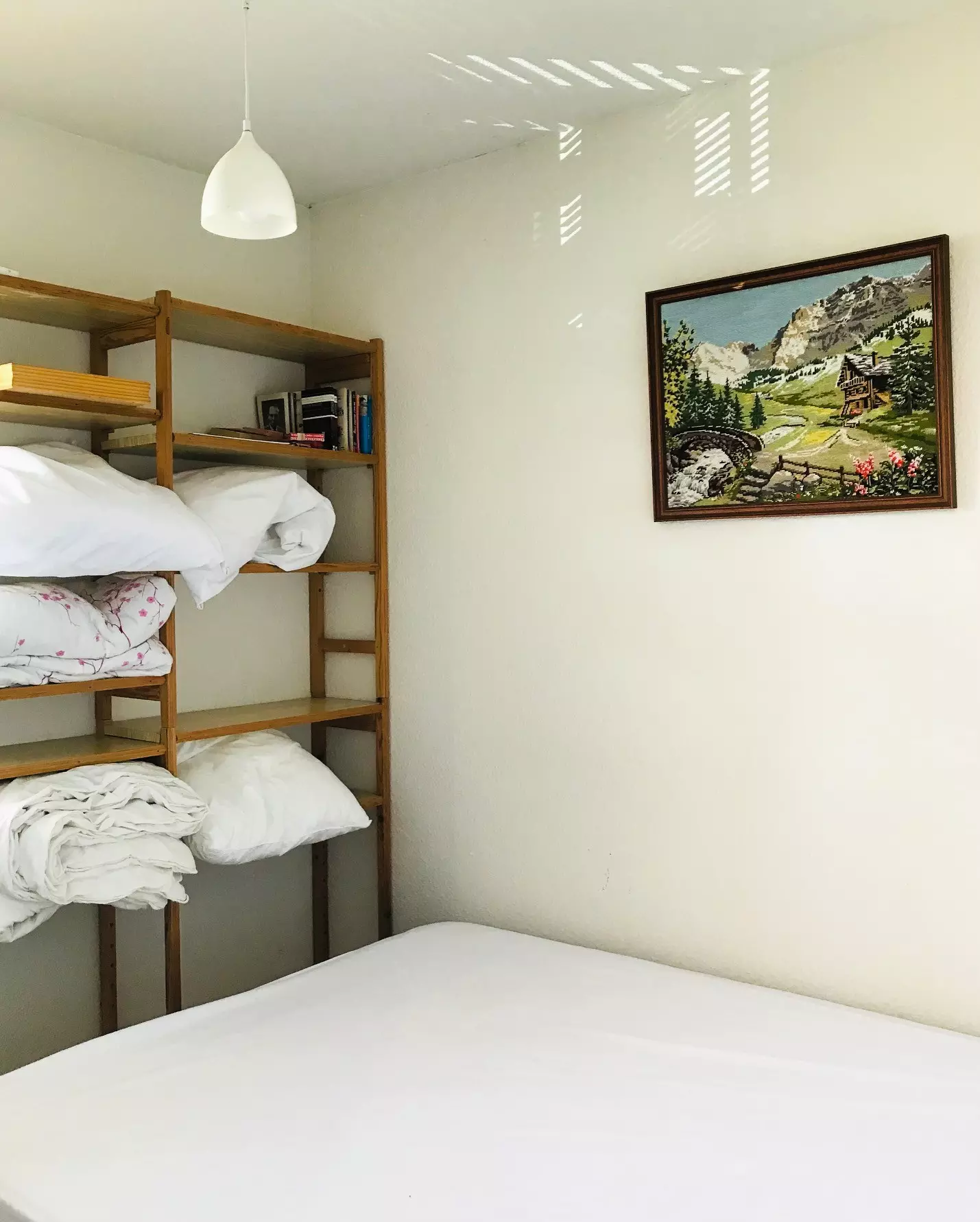 A mountain corner accommodates 2 bunk beds of 90 spacing between the 2 narrow beds!!! (not suitable for children under 6 years old) and a storage cupboard. The bedroom has a double bed (140).