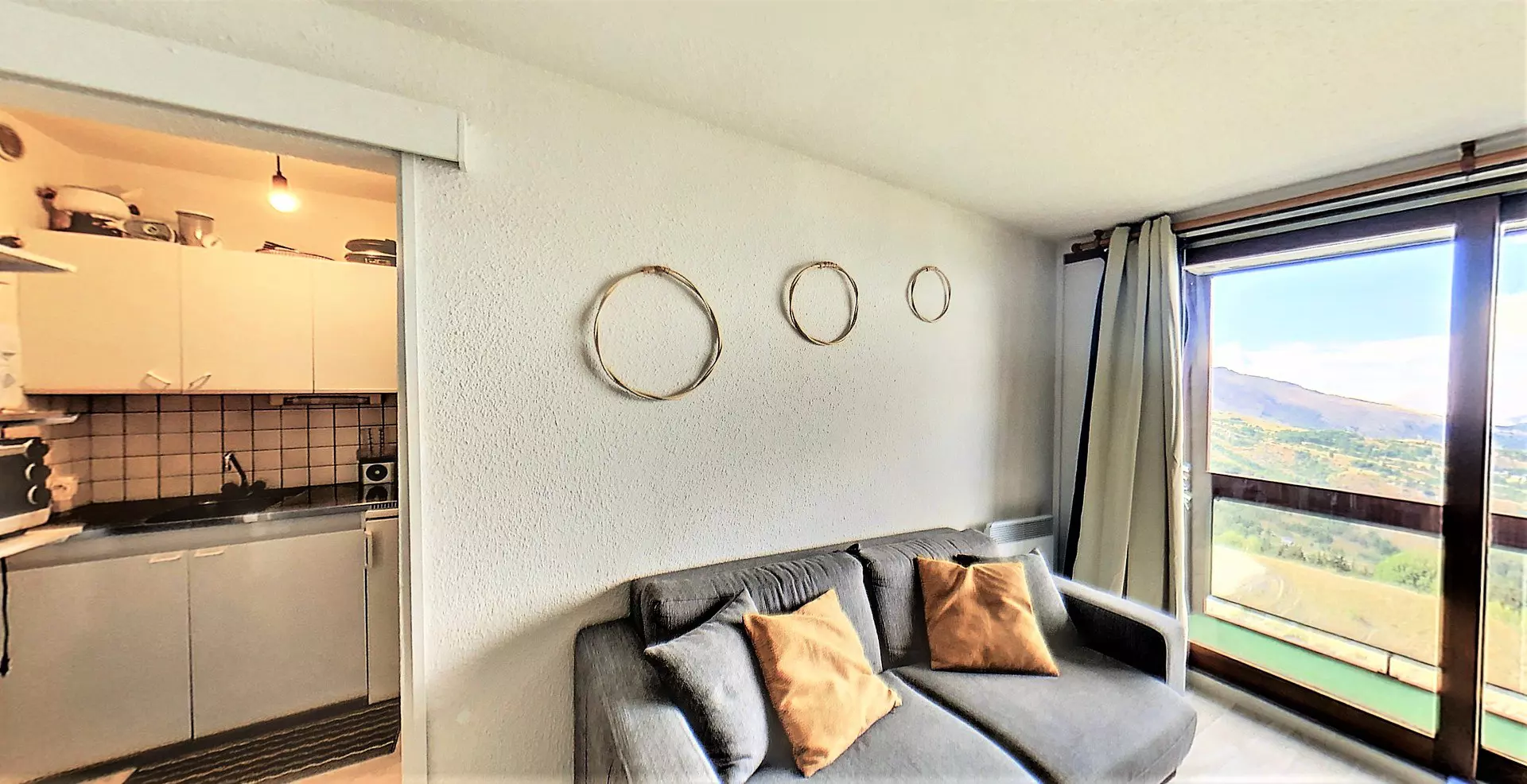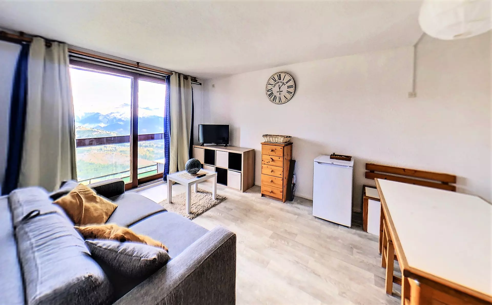 Beautiful 28m² studio, for 4 adults and one child, Lunik Residence, on the 13th floor, north-facing balcony, mountain view and close to the La Voie Lactée chairlift.