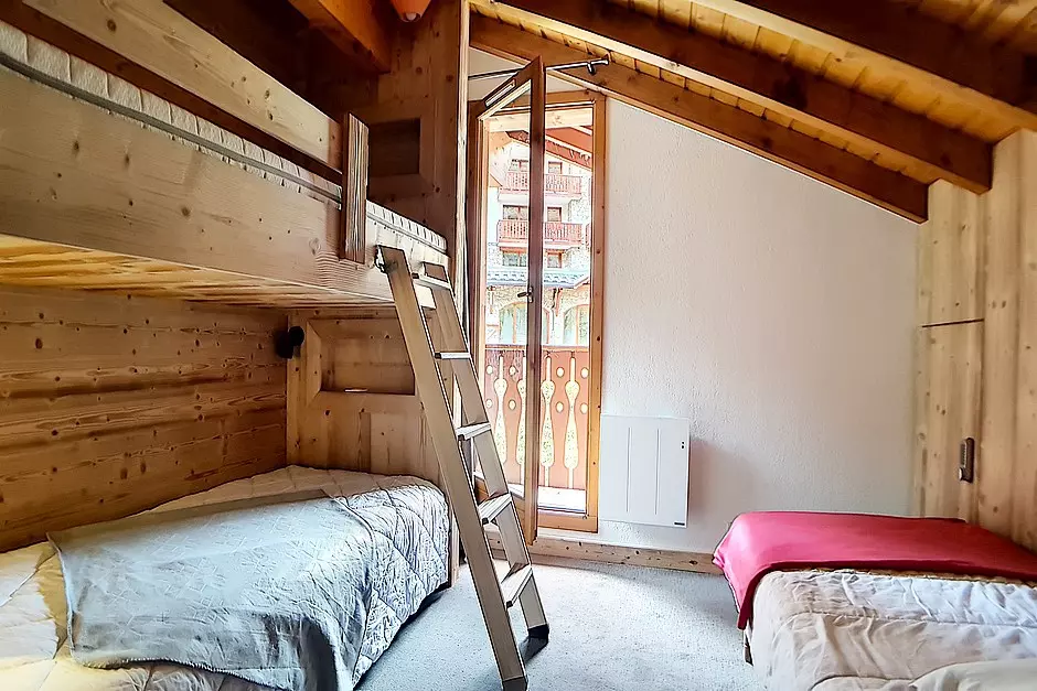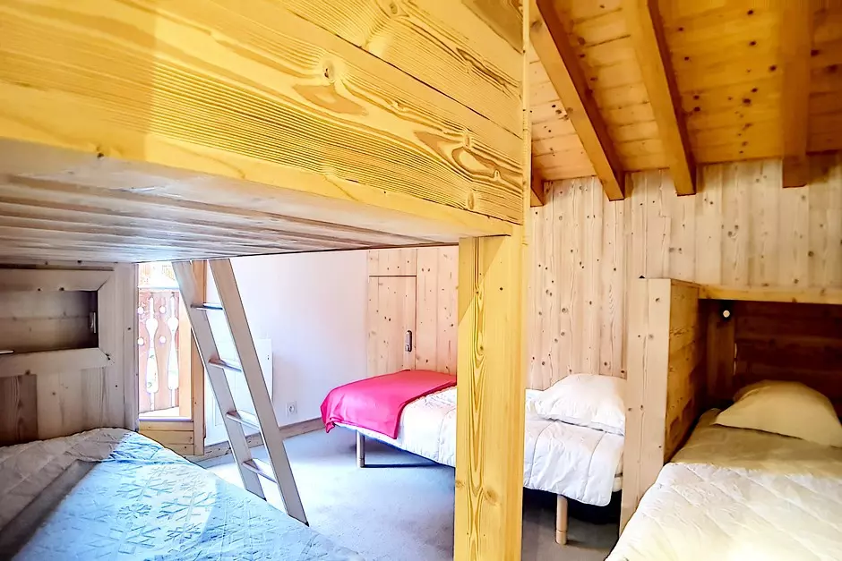 Bedroom 3 attic and for children (upstairs): 1 bunk bed and 2 single beds.