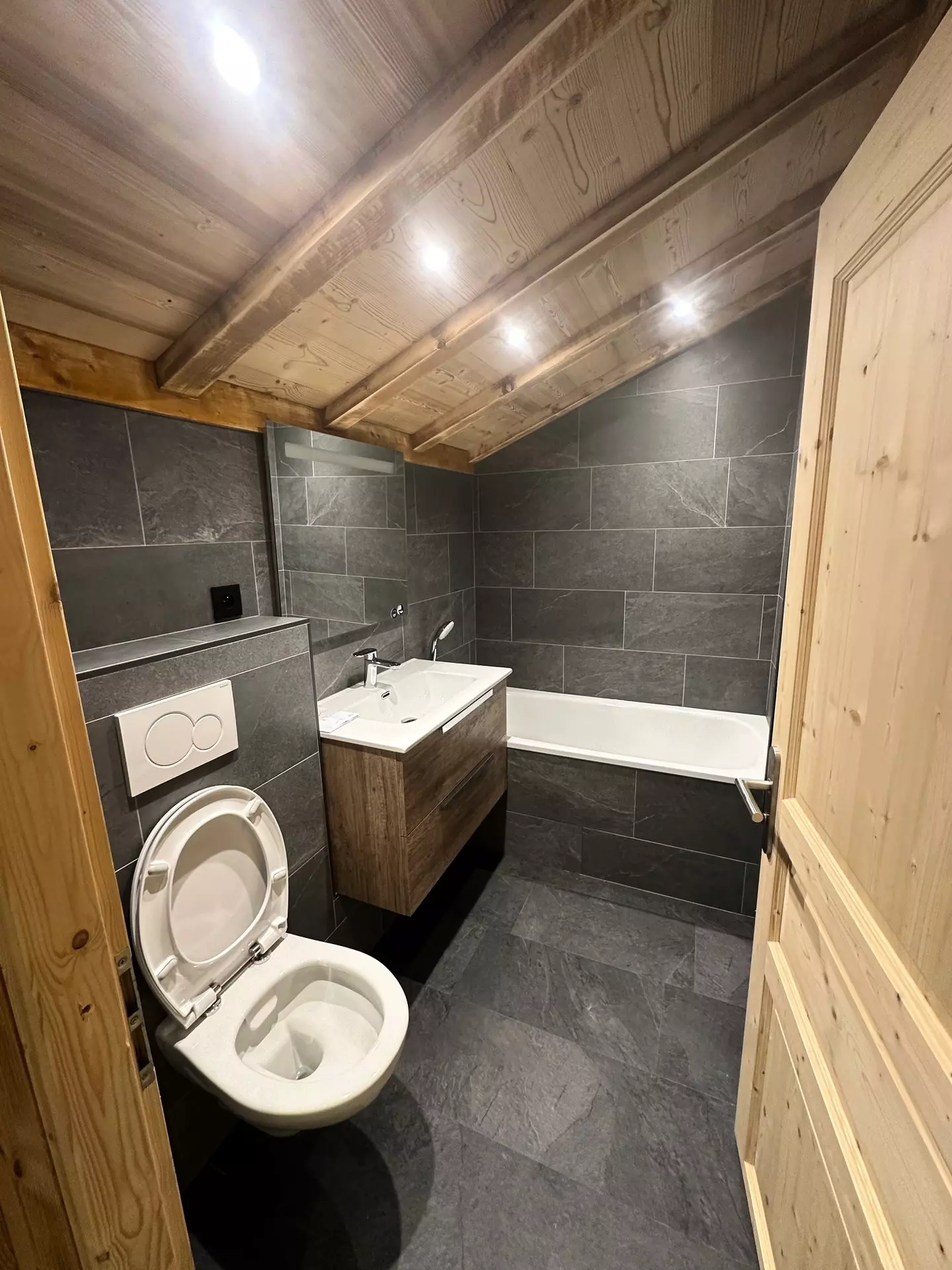 Bathroom with bathtub and separate WC (on the ground floor).